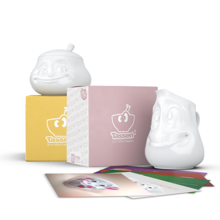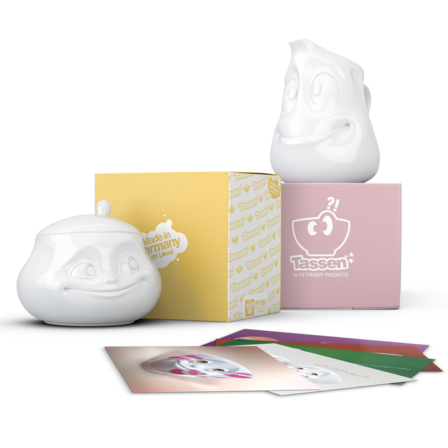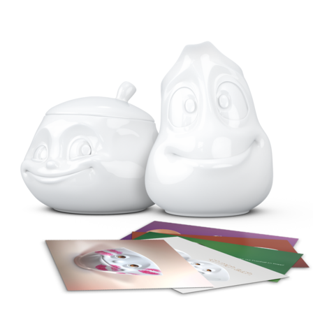 Unsere Zuckerdose SÜSS und das Kännchen DROLLIG + 5 Postkarten*
