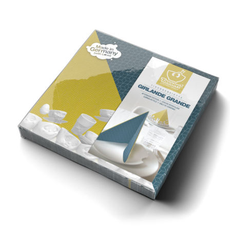 Unsere bunten Papierservietten mit lustigen TASSEN-Motiven verwandeln jede Mahlzeit in ein rauschendes TASSEN-Fest. Als perfekte Ergänzung zu unseren Porzellanprodukten bringen die hochwertigen Servietten gute Laune auf den Tisch. Die geometrisch gemusterten Lunch Servietten „Girlande Grande“ sind dekoriert mit einer Auswahl von TASSEN-Charakteren. 100% aus deutscher Herstellung
