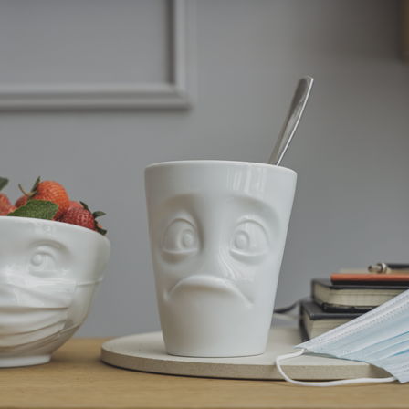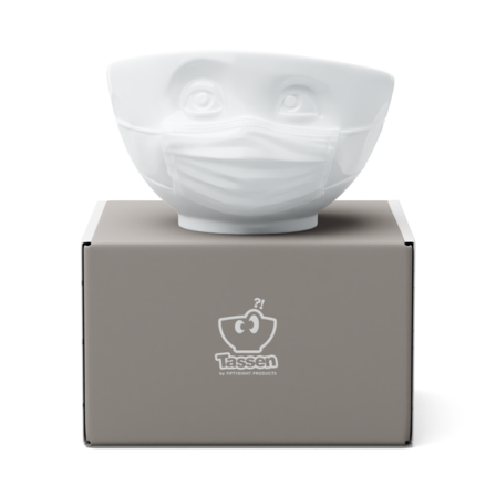 Mit der Corona-Krise wurde die Maske zu einem Symbol für die grundlegenden Veränderungen, die sich daraus ergeben haben. Das hat uns bewogen dieser ungewöhnlichen Zeit auch ein entsprechendes Produkt, einen Zeitzeugen aus Porzellan, zu widmen. Das Design unserer 500ml Schale haben wir ZUVERSICHTLICH genannt – denn genau so wollen wir diesen Herausforderungen auch begegnen.