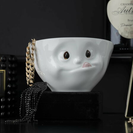 Unser Schälchen LECKER war ja schon immer herzzerreißend, aber jetzt mit farbigen Augen und rosa Zunge. Wer kann da schon widerstehen, sich nicht noch mehr zu holen, von der leckeren Eiscreme oder dem Pudding oder den Nüsschen oder den Gummiebärchen oder...