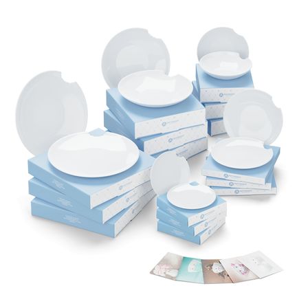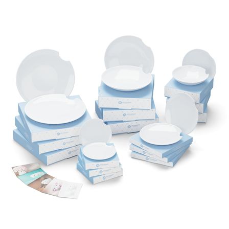 Alle 5 unterschiedlichen Größen unsere Teller mit Biss für 6 Personen in einem Set vereint. Dem perfekt gedeckten Tisch steht nichts mehr im Wege.