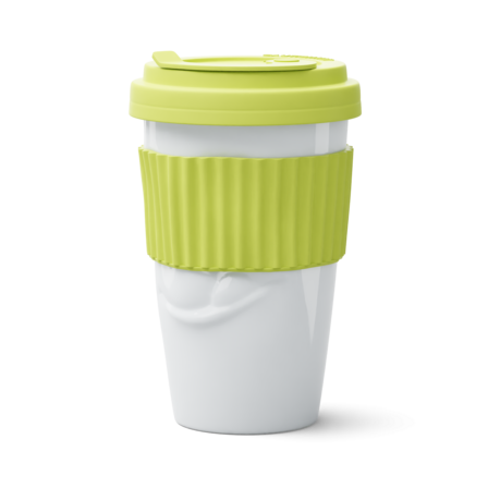 Und wer möchte, kann die farbigen Deckel und Manschetten auch als Set nachkaufen und seinen Becher je nach Laune anders stylen. Der Deckel und die Manschetten kommen in den Farben Weinbeere, Mint, Marineblau und Limette.