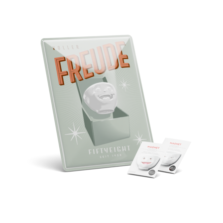 Blechschild VOLLER FREUDE + Magnet SINGEND + Magnet GRINSEND