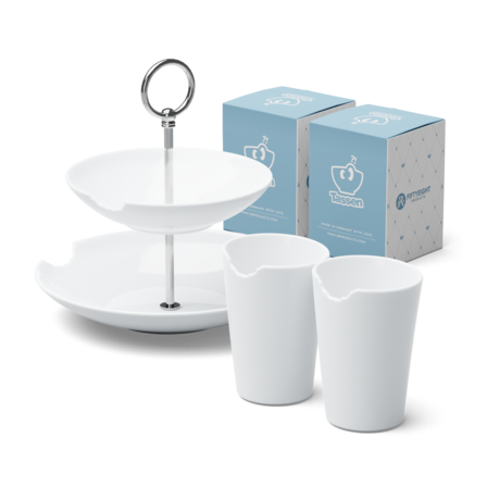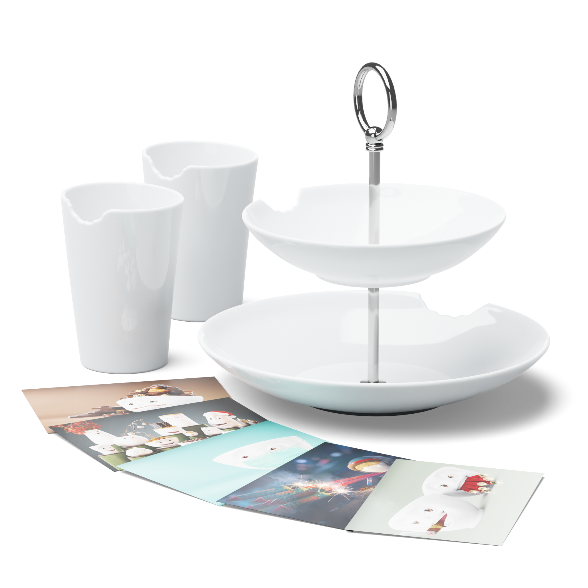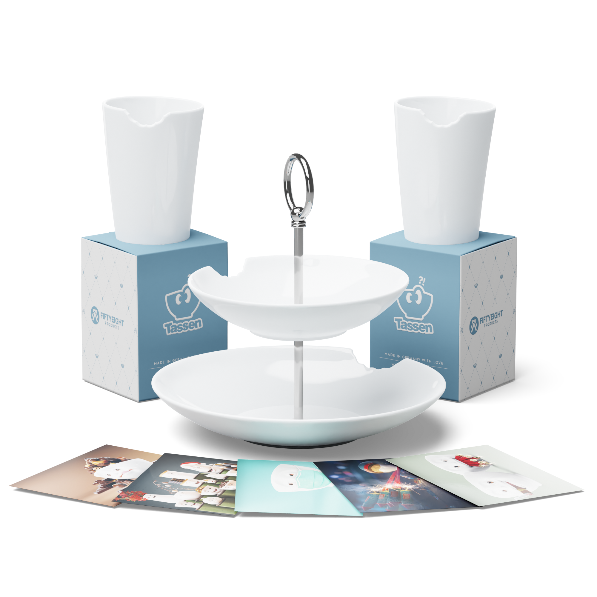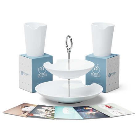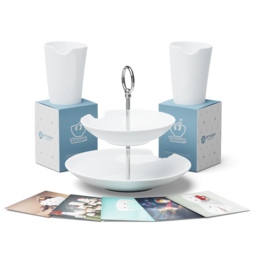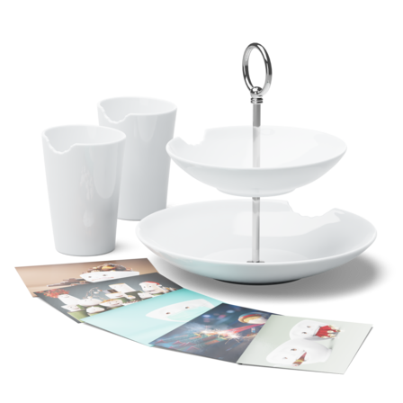 1x Food-Tempel 2-stufig + 2x Becher mit Biss + 5 Postkarten* *Unsere Postkarten werden nach dem Zufallsprinzip ausgewählt, daher dienen die abgebildeten Karten lediglich zur Illustration und sind keine verbindliche Auswahl.