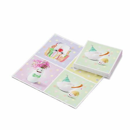 Die neuen Stars aller Kindergeburtstage sind unsere Cocktail Servietten HAPPY HAPPY ist schön bunt und zeigt viele lustige TASSEN Party Szenen als Aufdruck.