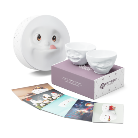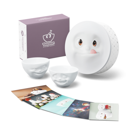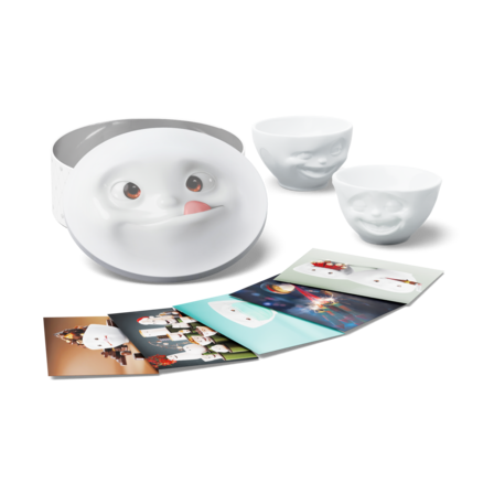 1 Blechdose Deiner Wahl + 200 ml mittleres Schälchen Set Nr. 4 LACHEND & ZWINKERND + 5 Postkarten