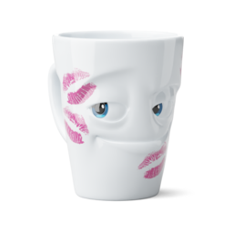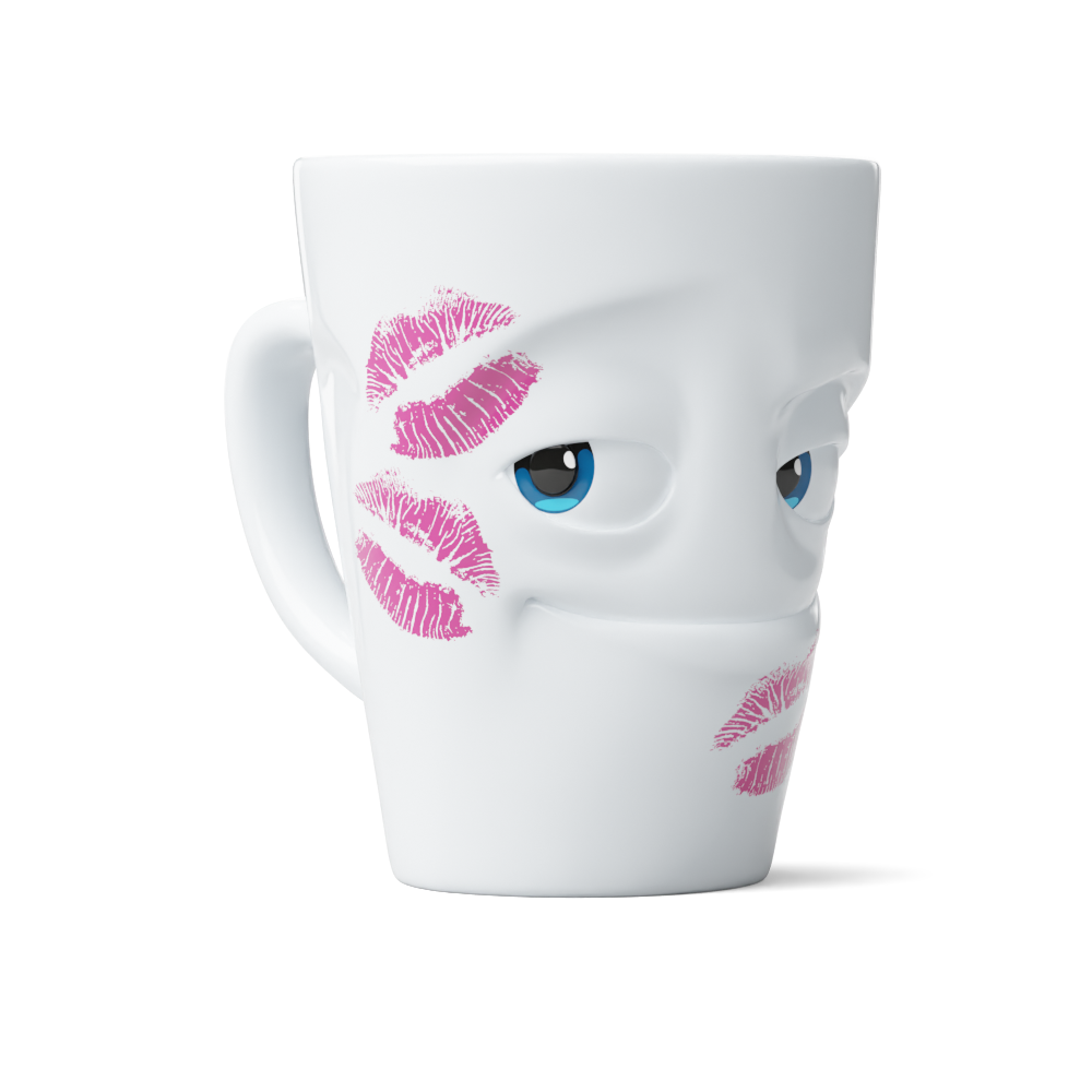 Unser beliebter Henkelbecher Verschmitzt mit den blauen Augen hat ein besonders liebevolles Update bekommen: Er wurde rundum geküsst! 💋