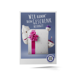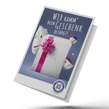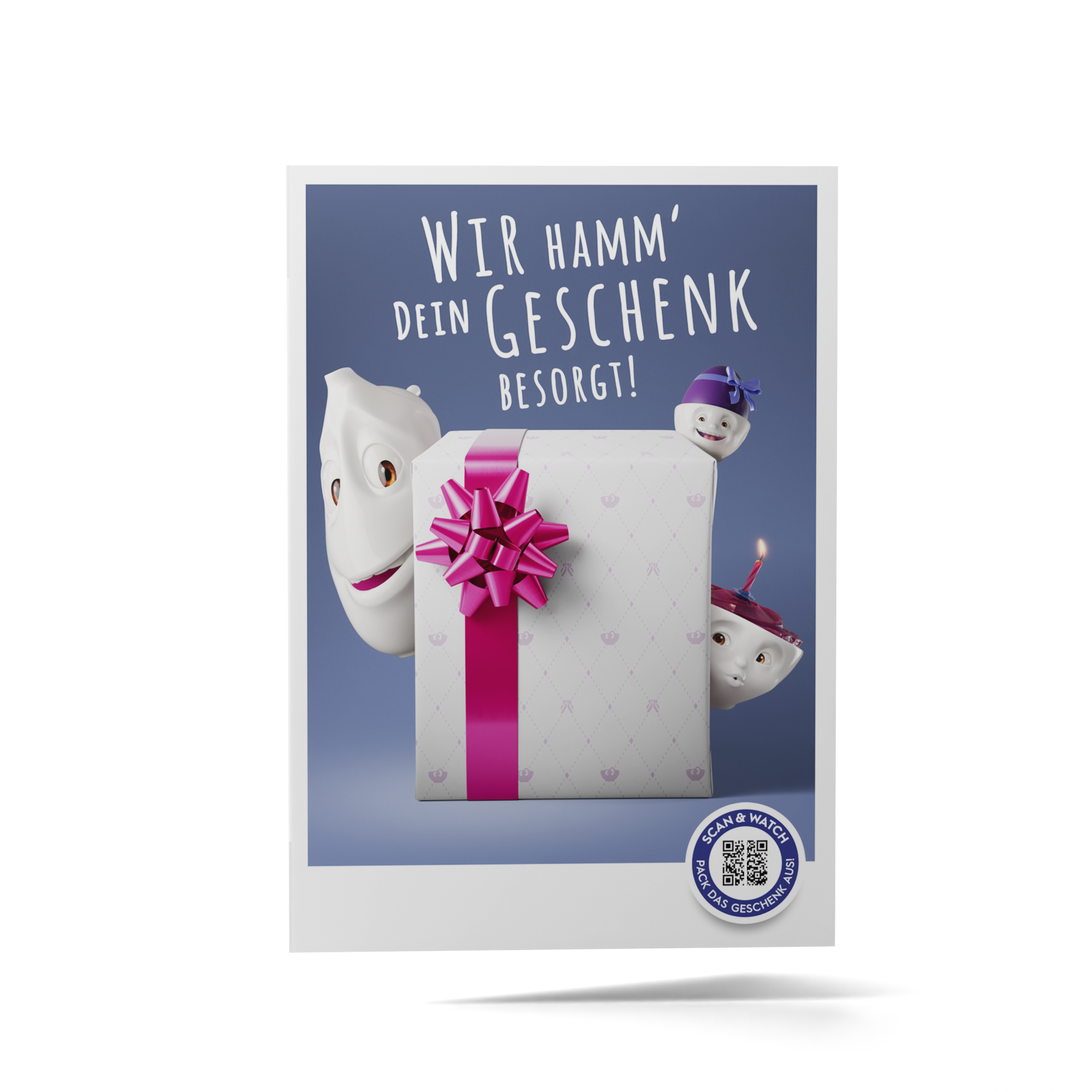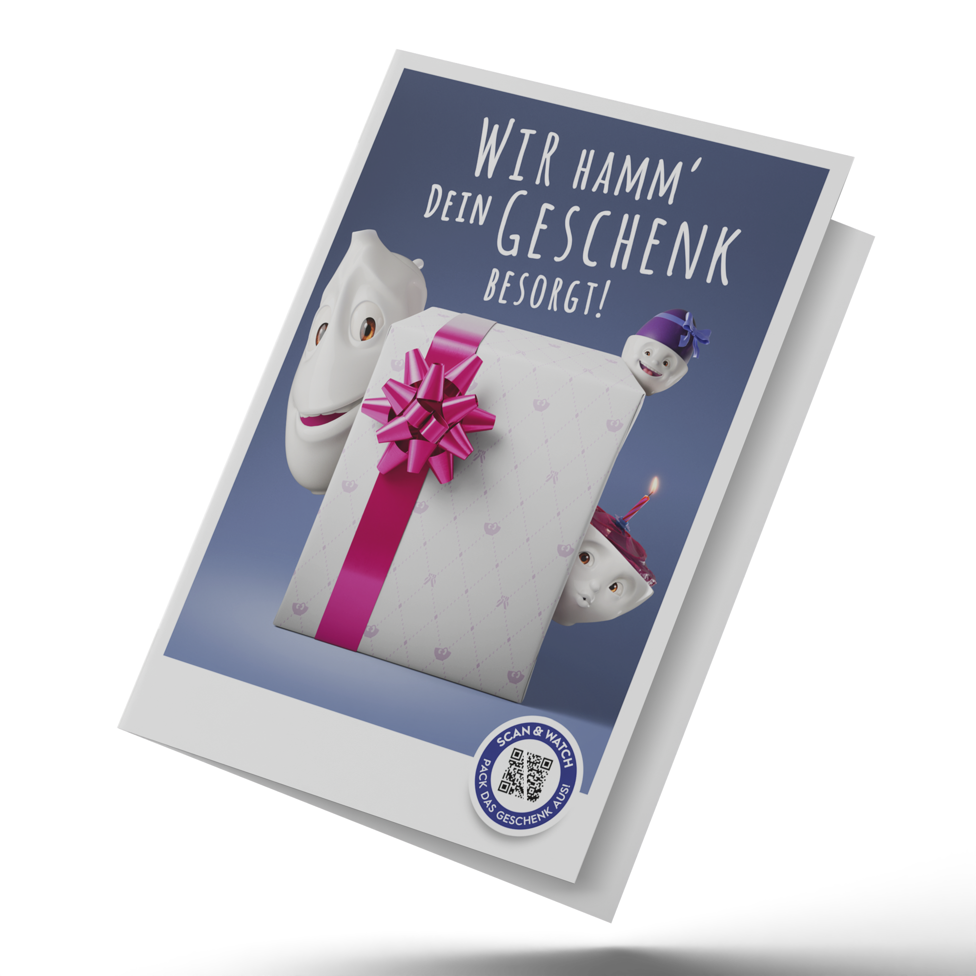 Denn neben ihrem witzigen Design steckt noch ein kleines Extra dahinter: Scanne einfach den QR-Code mit deinem Smartphone, und schon erwacht die Karte zum Leben. Ein kurzer Film startet direkt auf deinem Display und zaubert garantiert ein Lächeln ins Gesicht.