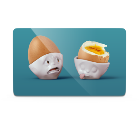 Das Motiv "Halb so schlimm" aus unserer TASSEN-Serie der guten, alten Schnittenbrettchen, bzw. Frühstücksbrettchen.