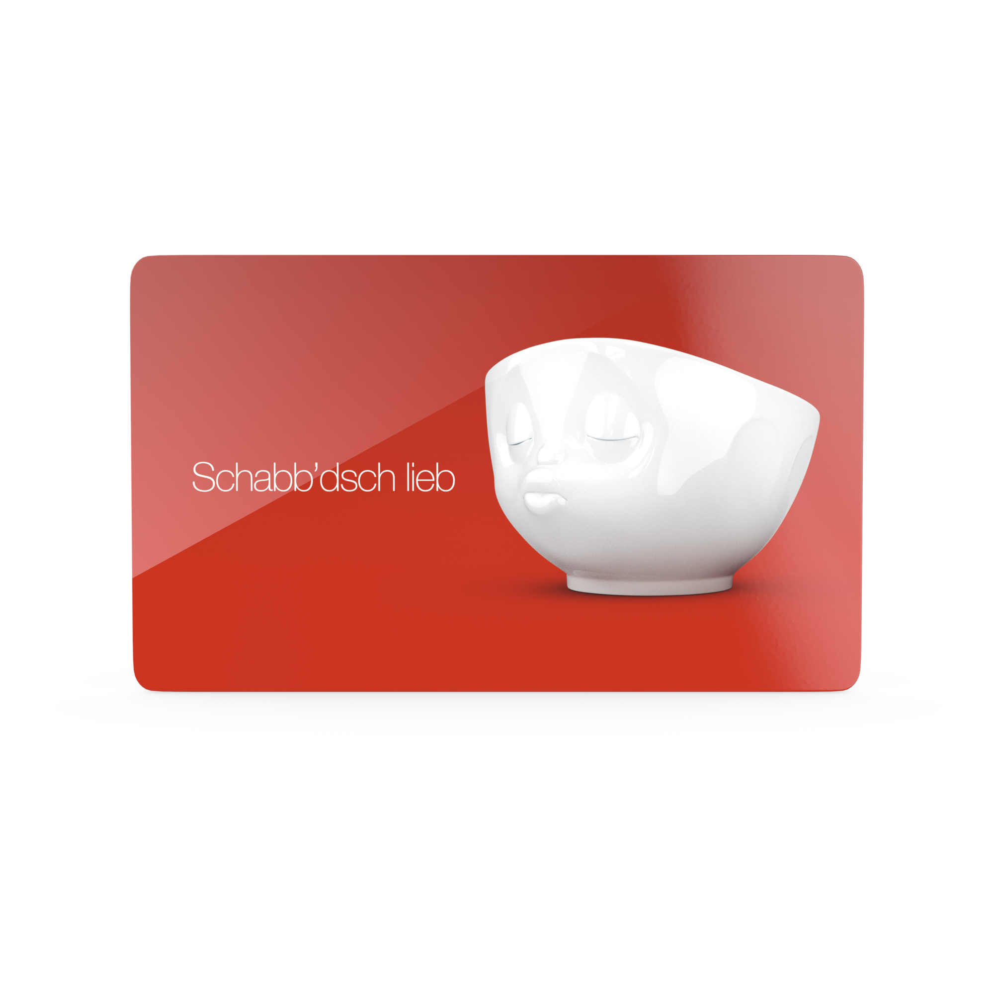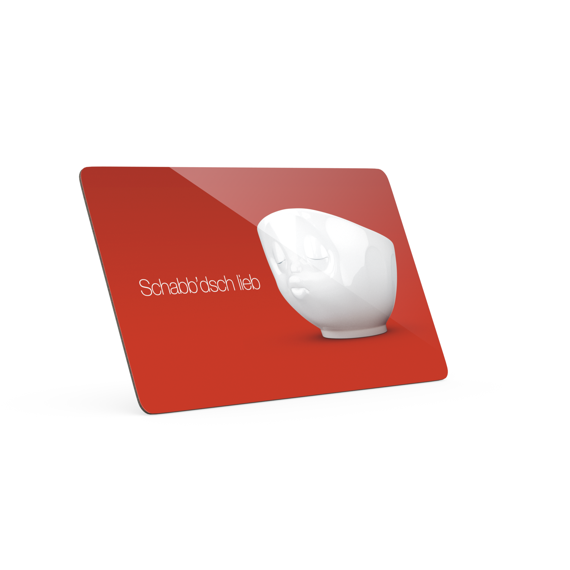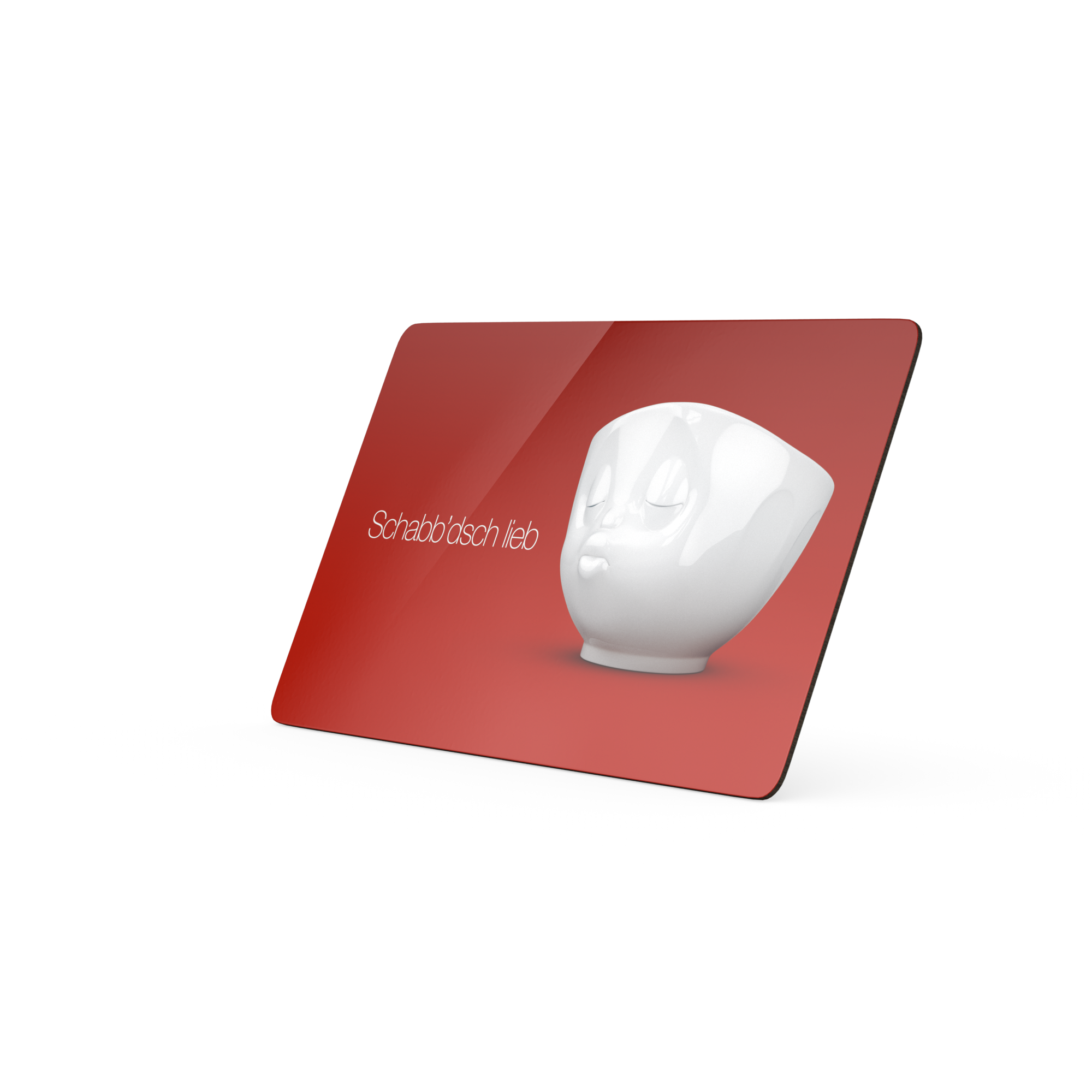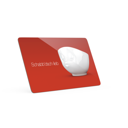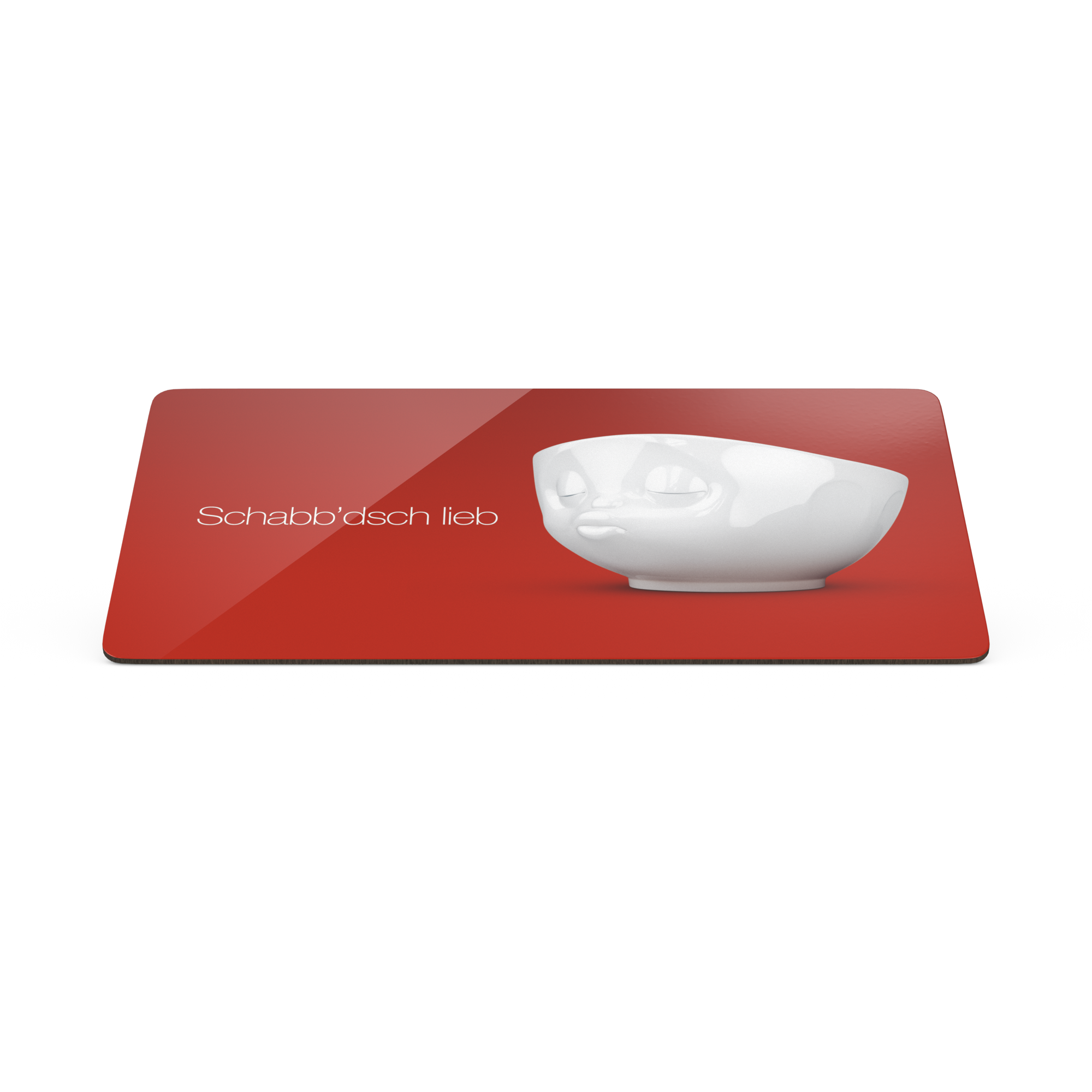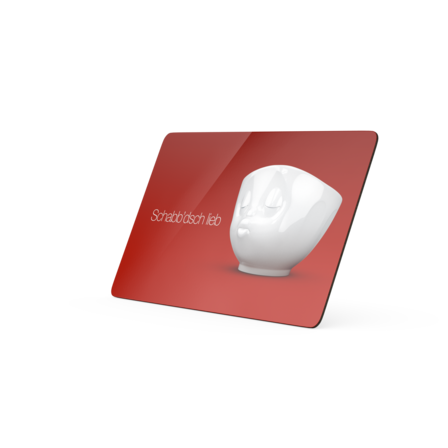 Das Motiv "Schabb'dsch lieb", rot aus unserer TASSEN-Serie der guten, alten Schnittenbrettchen, bzw. Frühstücksbrettchen.