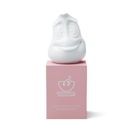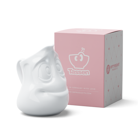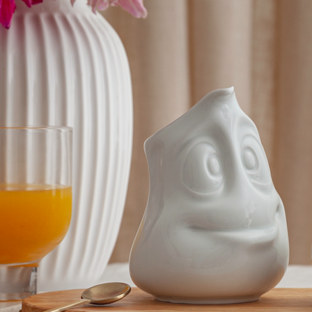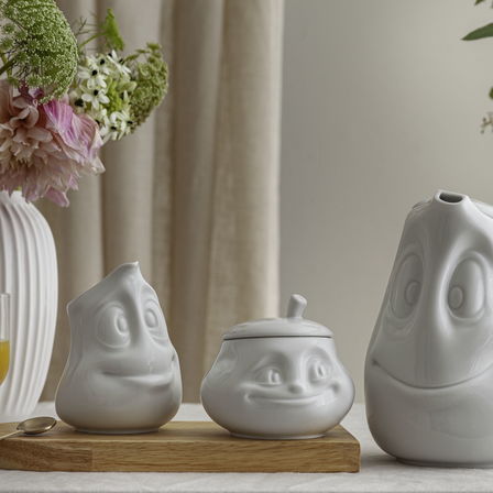 Mit großen Kulleraugen und einem verführerischen Lächeln serviert das drollige Kännchen in weiß, Milch zum Kaffee oder Soßen zu Dessert und Braten.