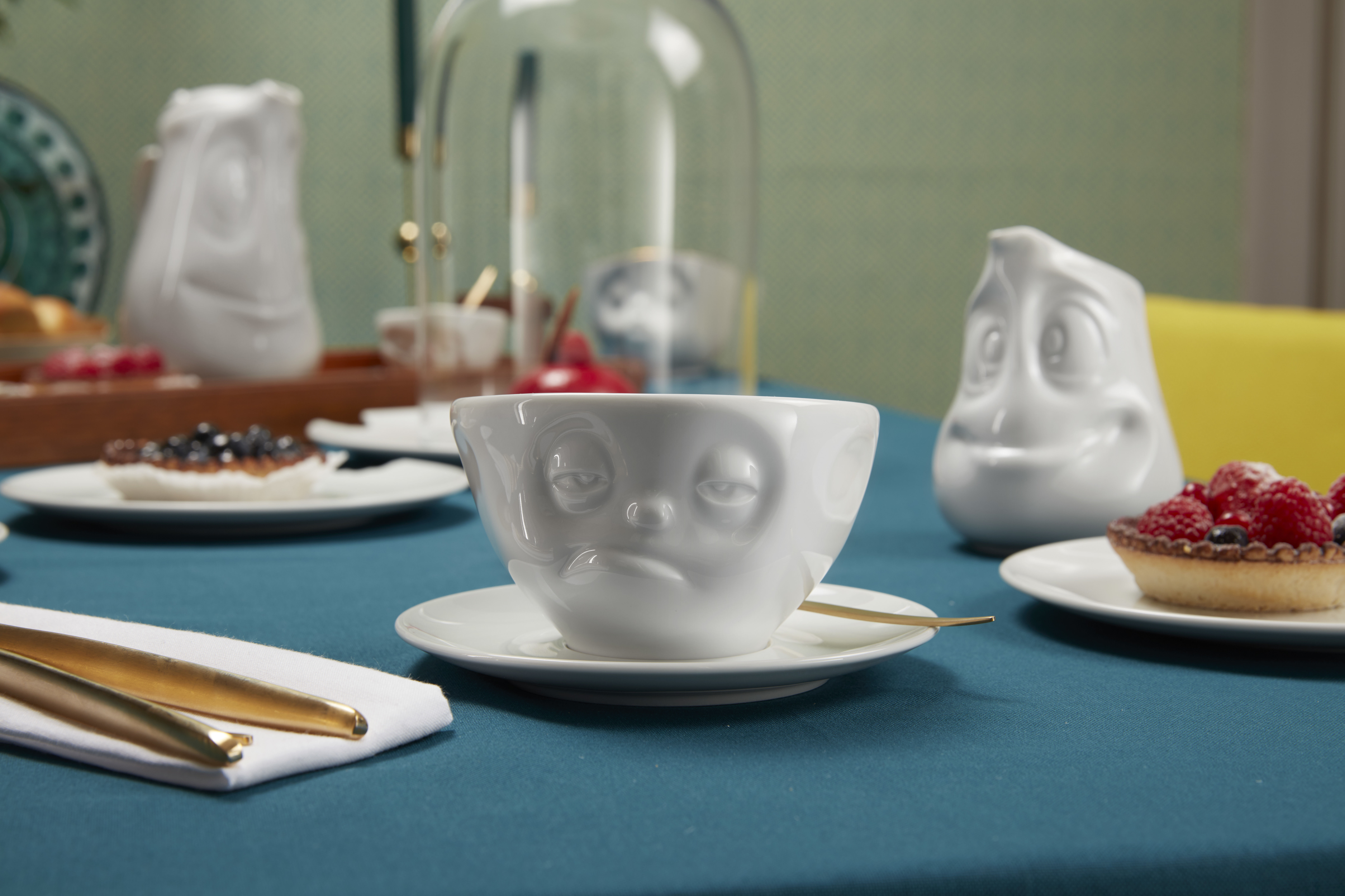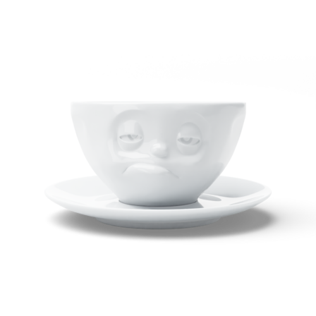Etwas überwältigt schaut unsere neue 200 ml Tasse „Verpennt“ in die Welt – von wegen: „Ich brauch erst mal einen Kaffee, sonst geht hier nix!“. So sorgt die verpennte Tasse sicher für Heiterkeit am Frühstückstisch, auch wenn man noch nicht voll und ganz wach ist.