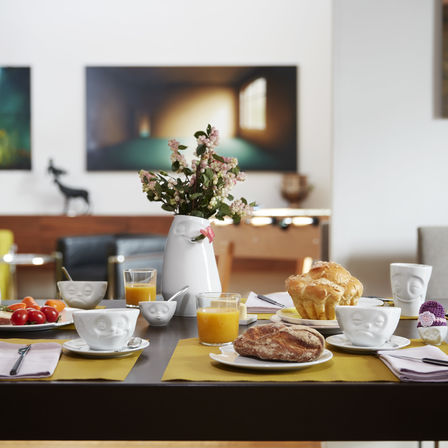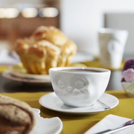 Mit Henkel und Unterteller lassen sich Kaffee, Tee und Kakao schmackhaft präsentieren.