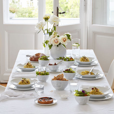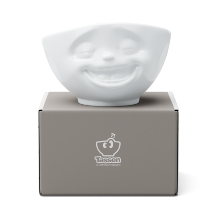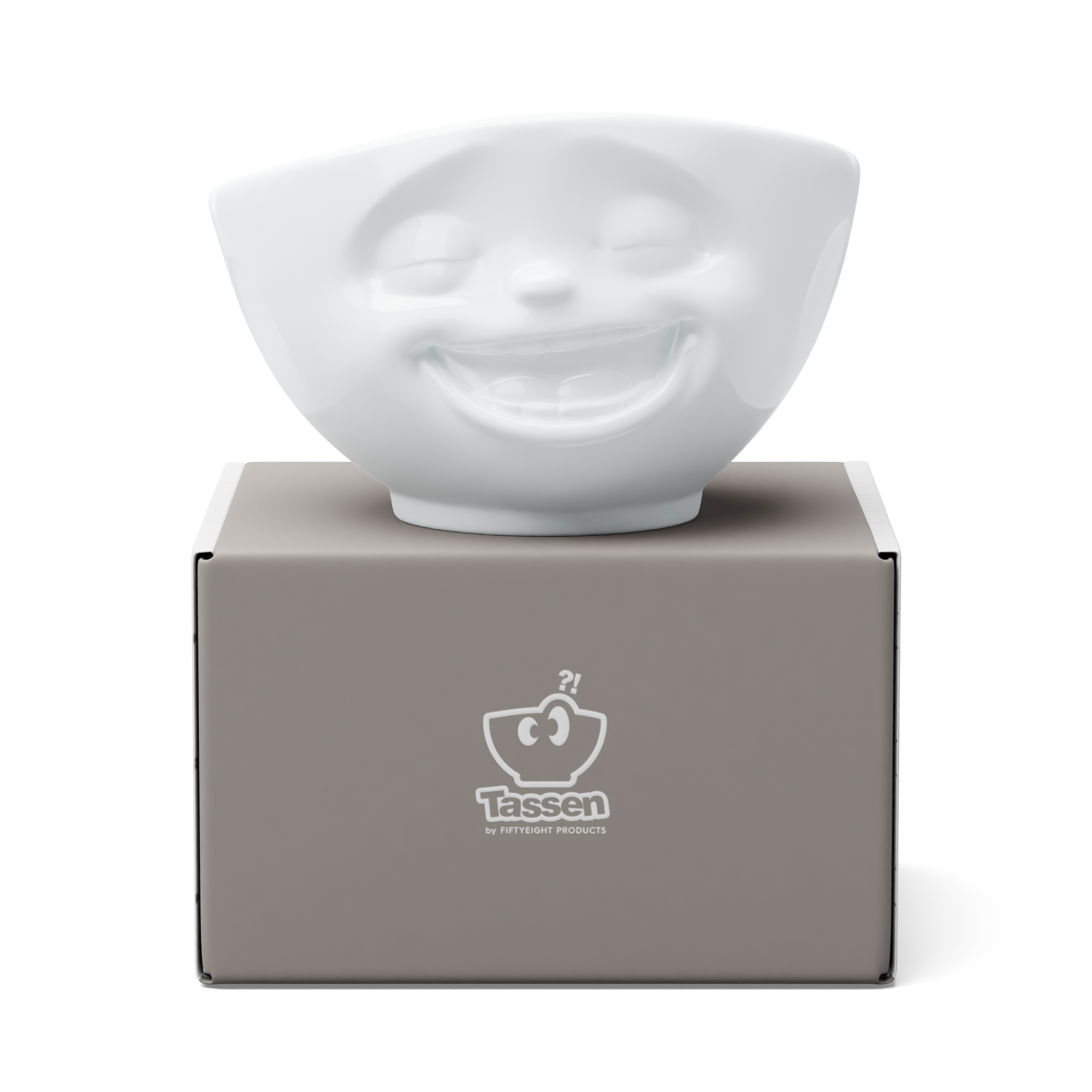 Ein weiteres fröhliches Gesicht in der Schalenkollektion bringt Freude auf Ihren gedeckten Tisch. Ihr herzhaftes Lachen steckt wahrlich an. So bekommen Müsli, Suppen, Pasta, Salate und allerlei andere Speisen eine extra Portion Würze.