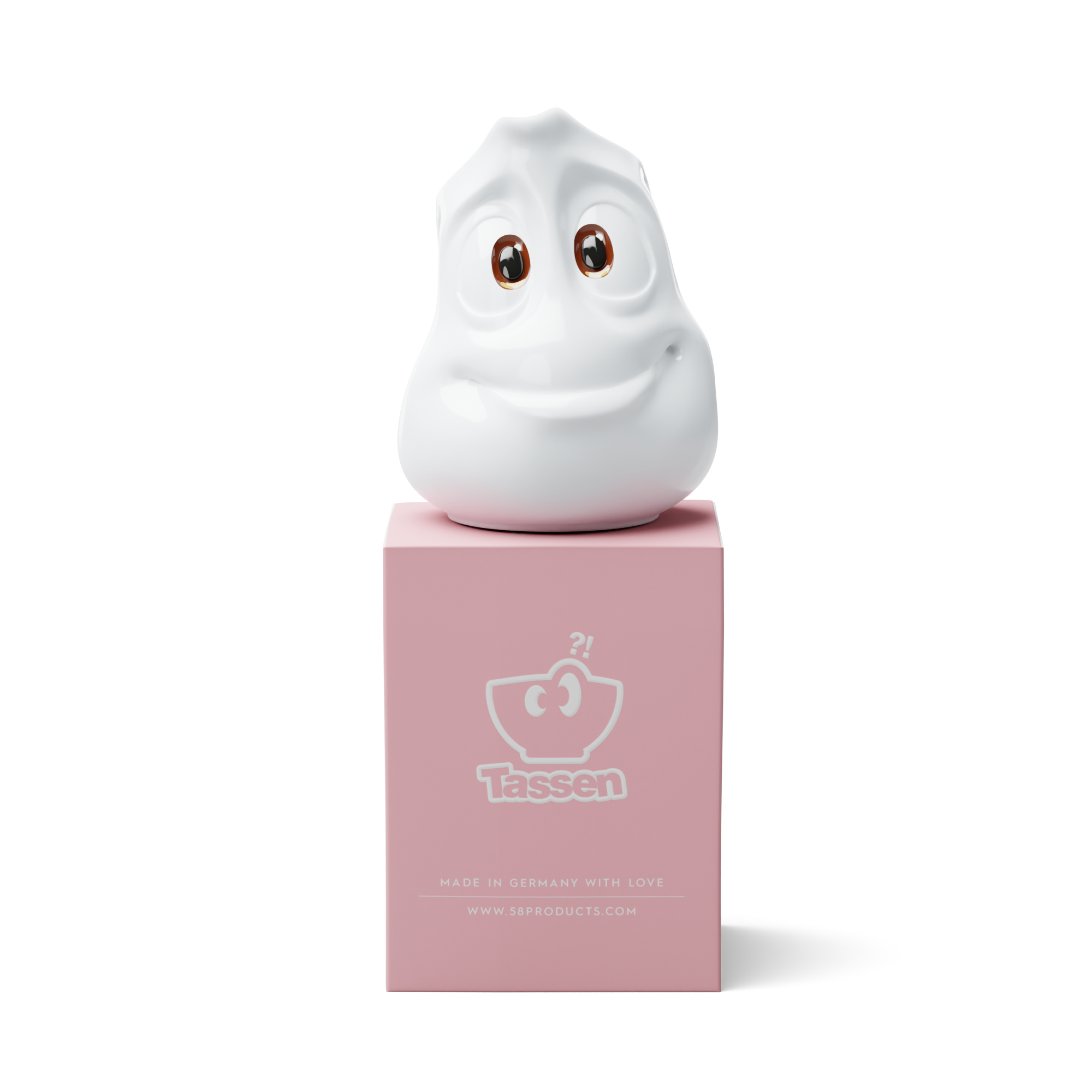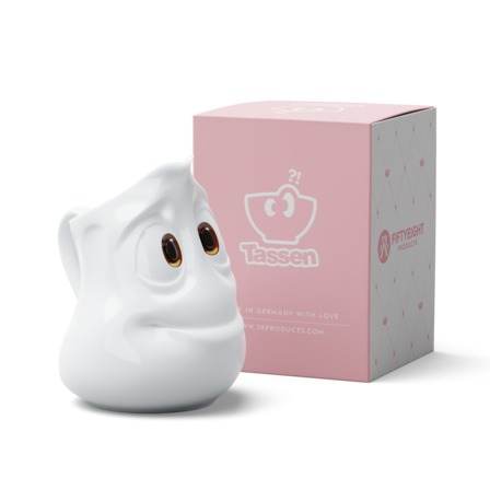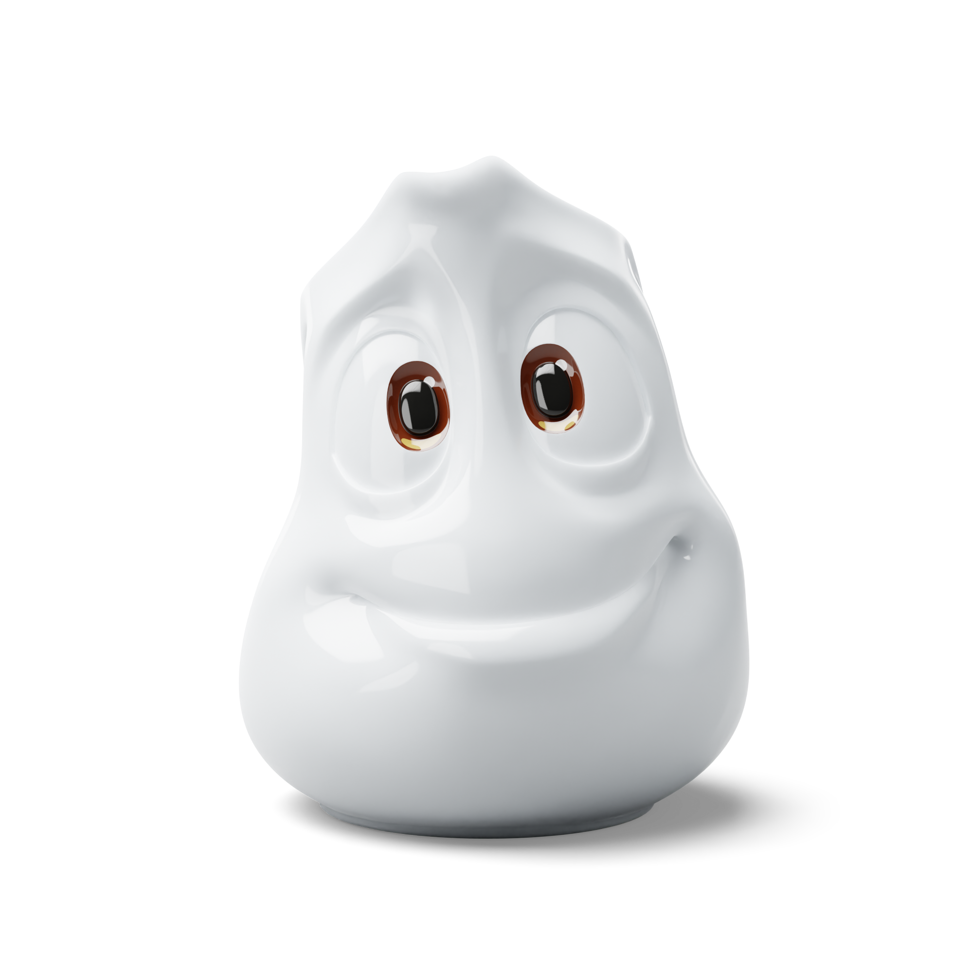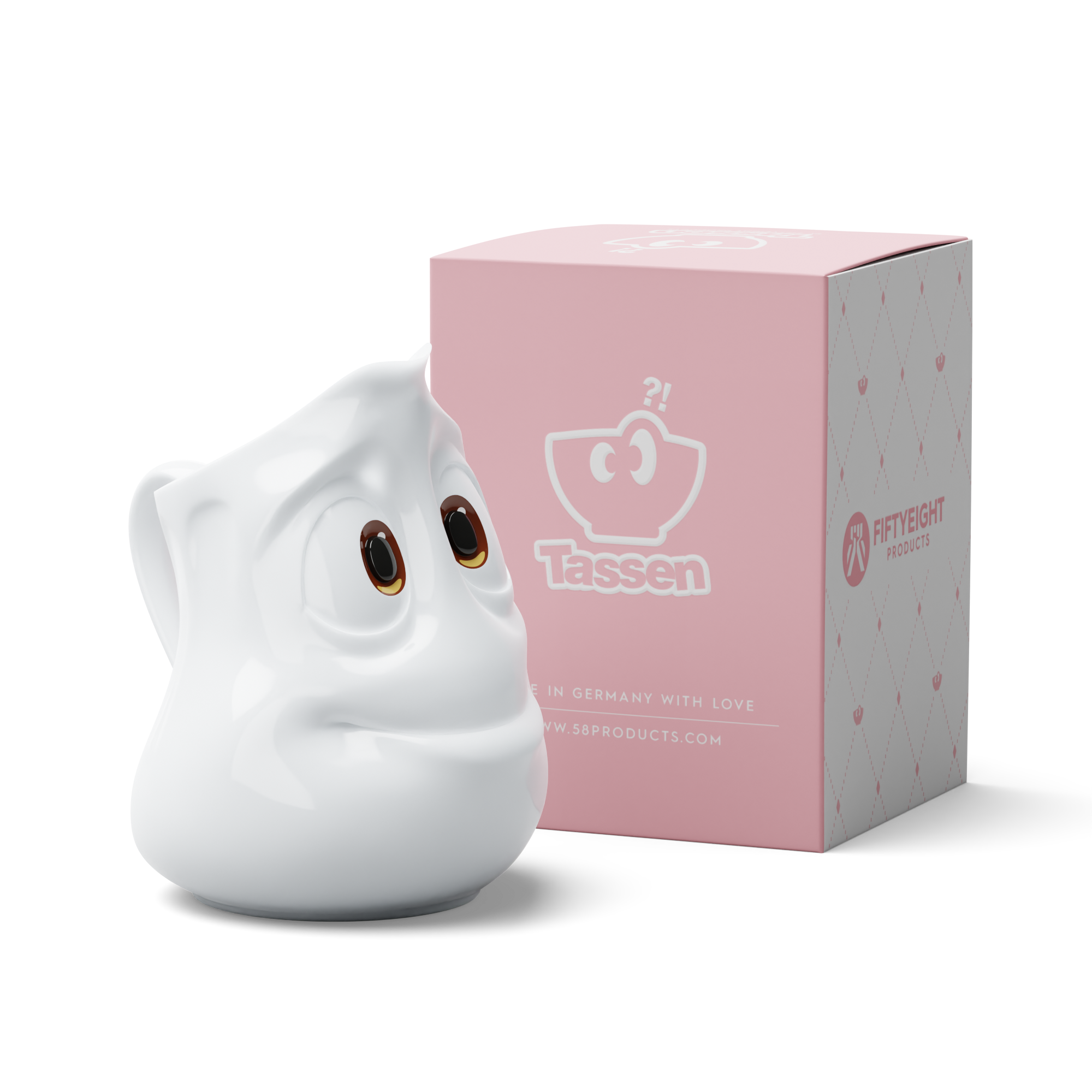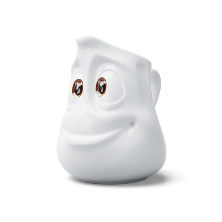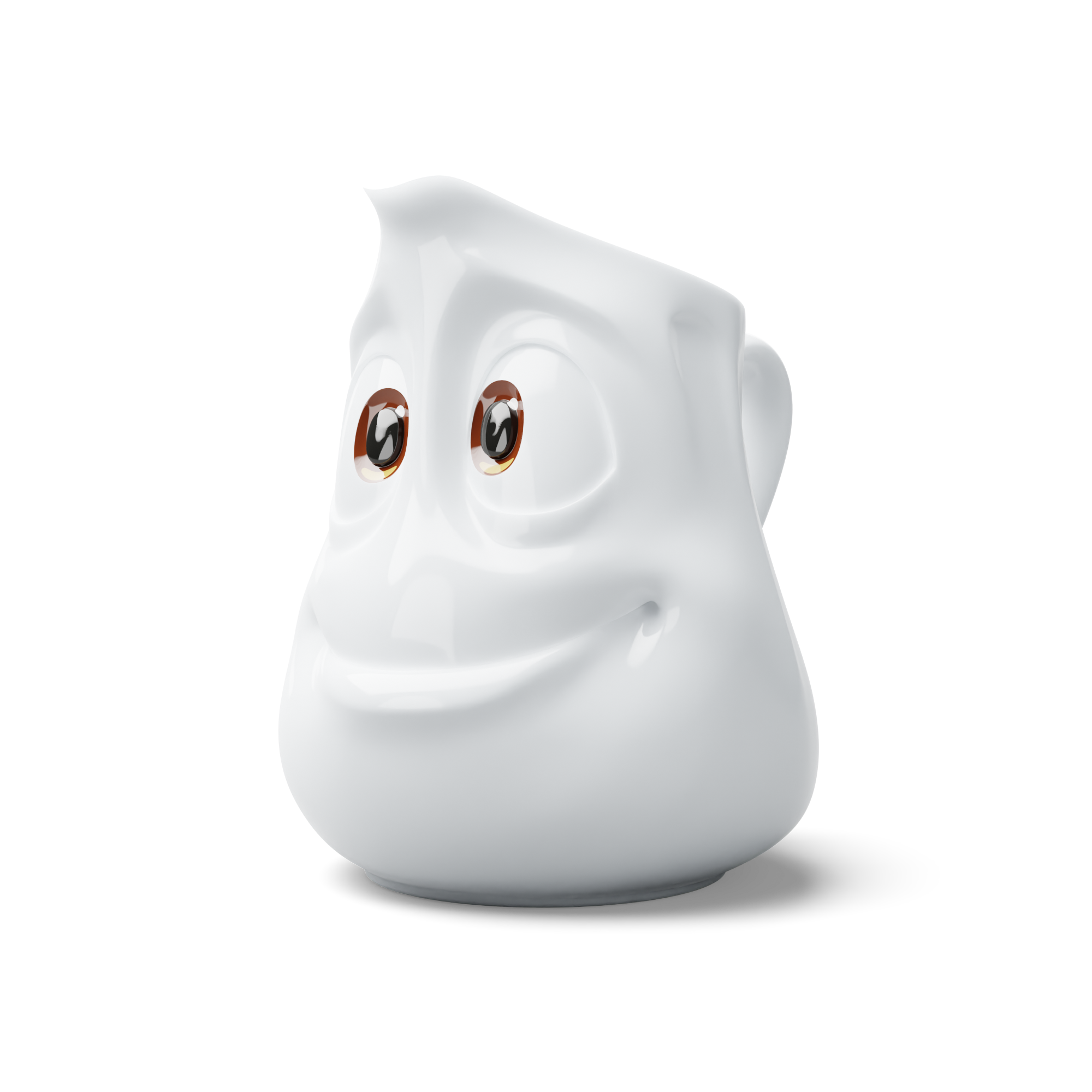 Mit großen Kulleraugen und einem verführerischen Lächeln serviert das "Drollige" Kännchen in Weiss mit farbigen Augen, Milch zum Kaffee oder Soßen zu Dessert und Braten.