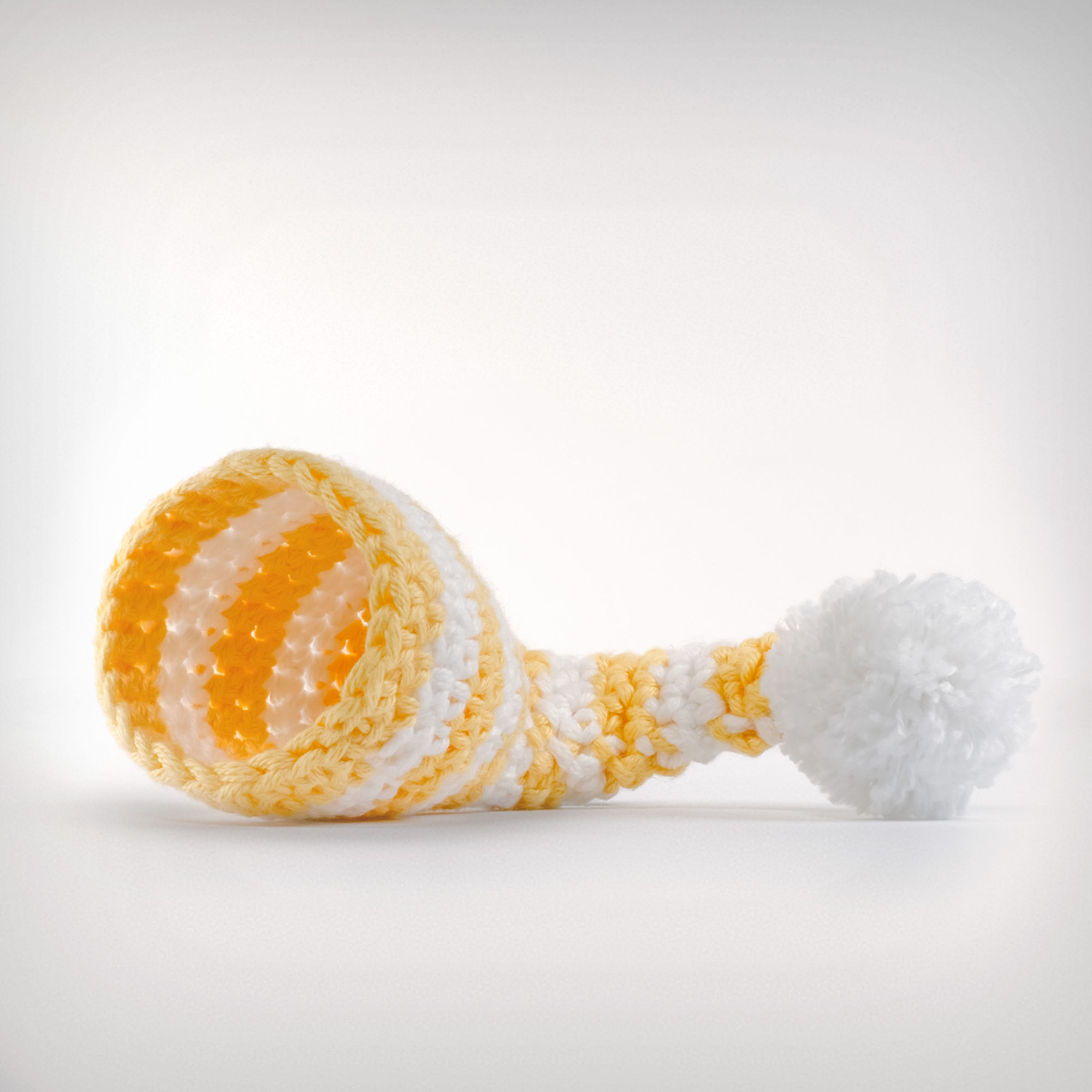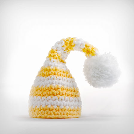 In modischen Querstreifen sind die gehäkelten Schlaf-Eiermützchen aus Baumwolle in verschiedenen Farben erhältlich.