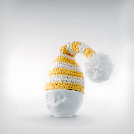Aufgewacht, ihr Nachtkappen! Mit unseren neuen Schlaf-Eiermützchen fängt der Tag gut an. Sie halten frisch gekochte Eier warm und verbreiten mit ihren Bommeln flauschiges Flair.