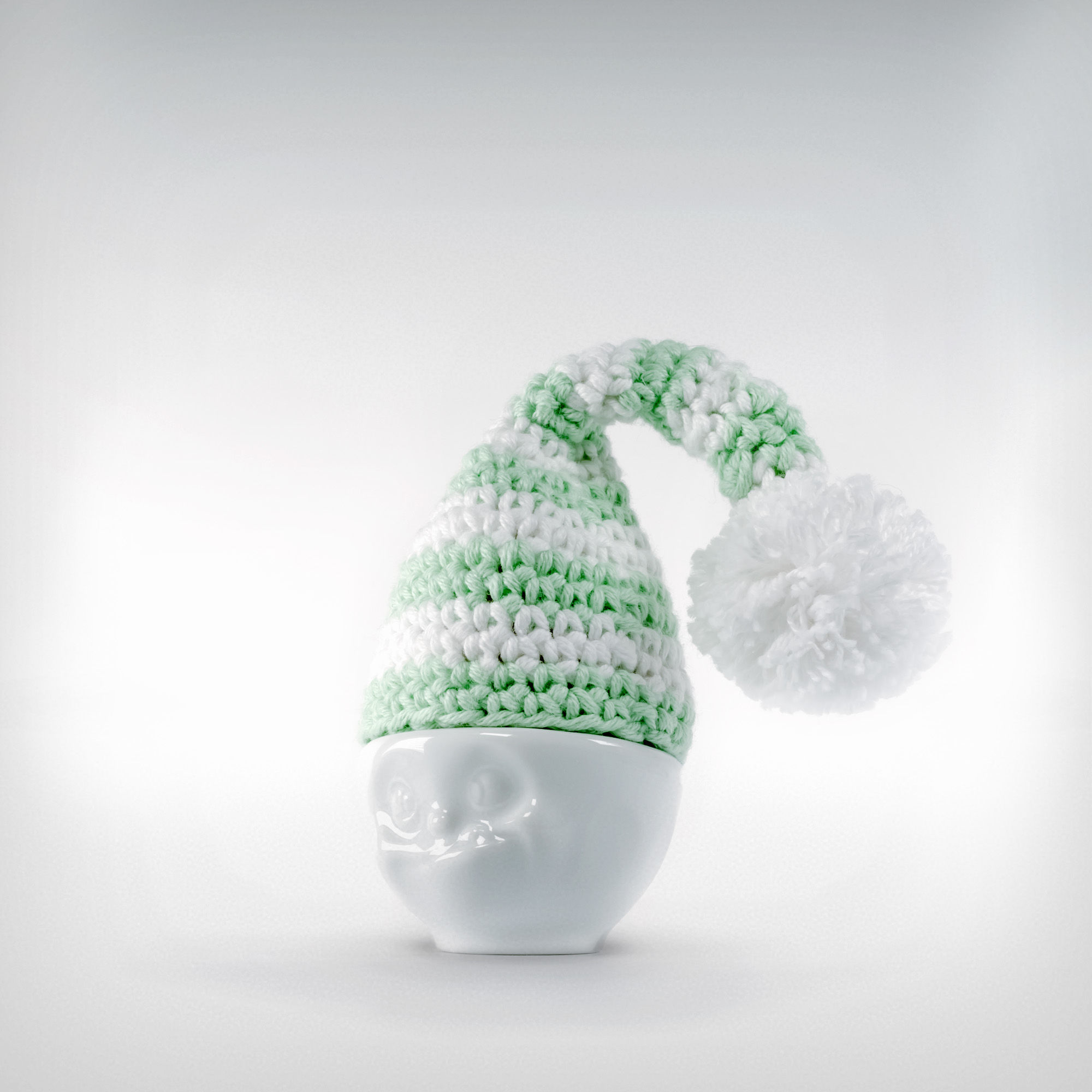 Aufgewacht, ihr Nachtkappen! Mit unseren neuen Schlaf-Eiermützchen fängt der Tag gut an. Sie halten frisch gekochte Eier warm und verbreiten mit ihren Bommeln flauschiges Flair.