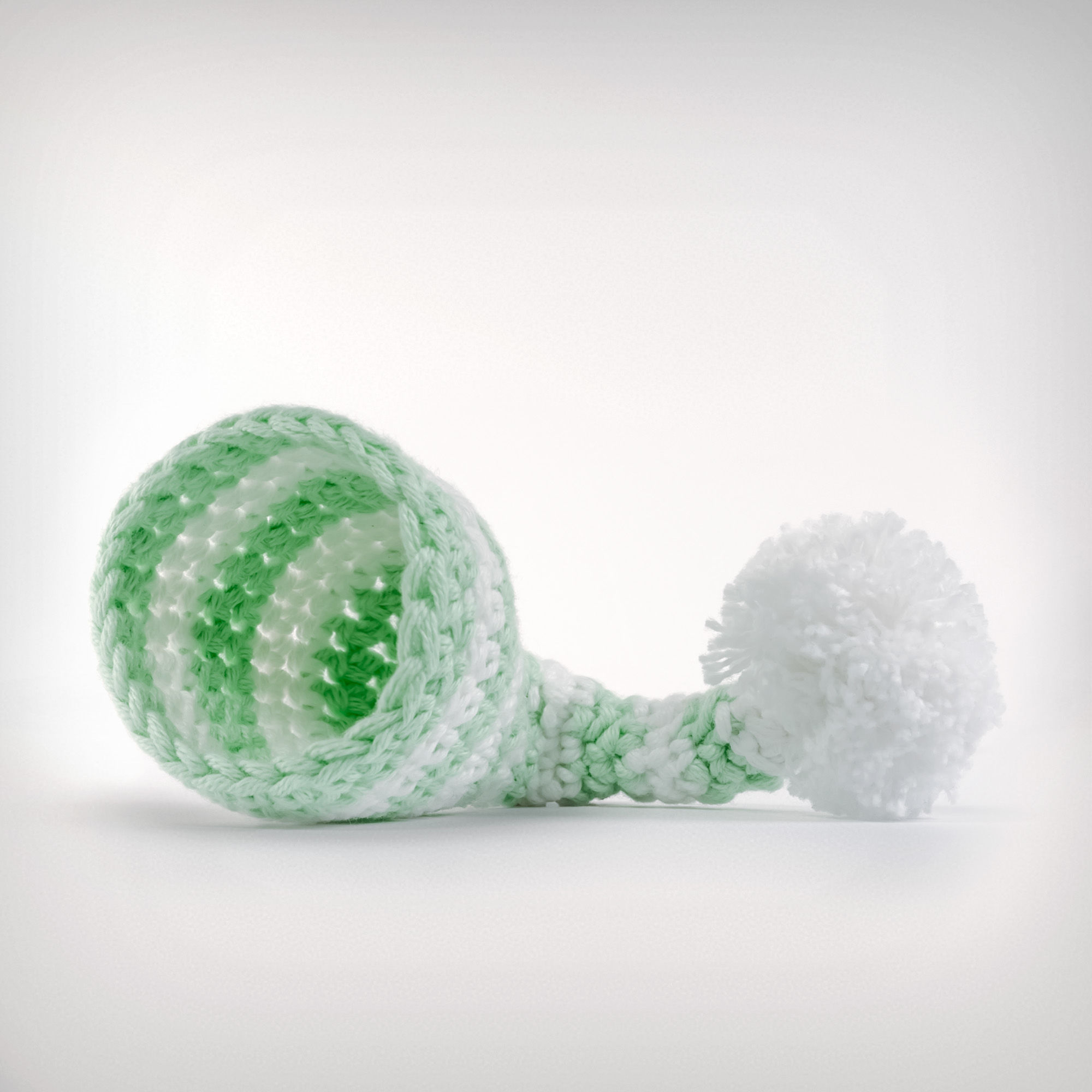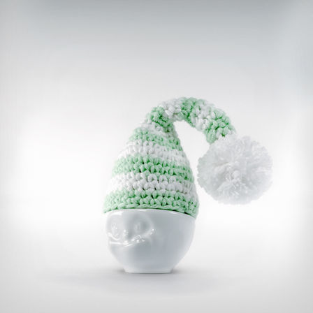 In modischen Querstreifen sind die gehäkelten Schlaf-Eiermützchen aus Baumwolle in verschiedenen Farben erhältlich.