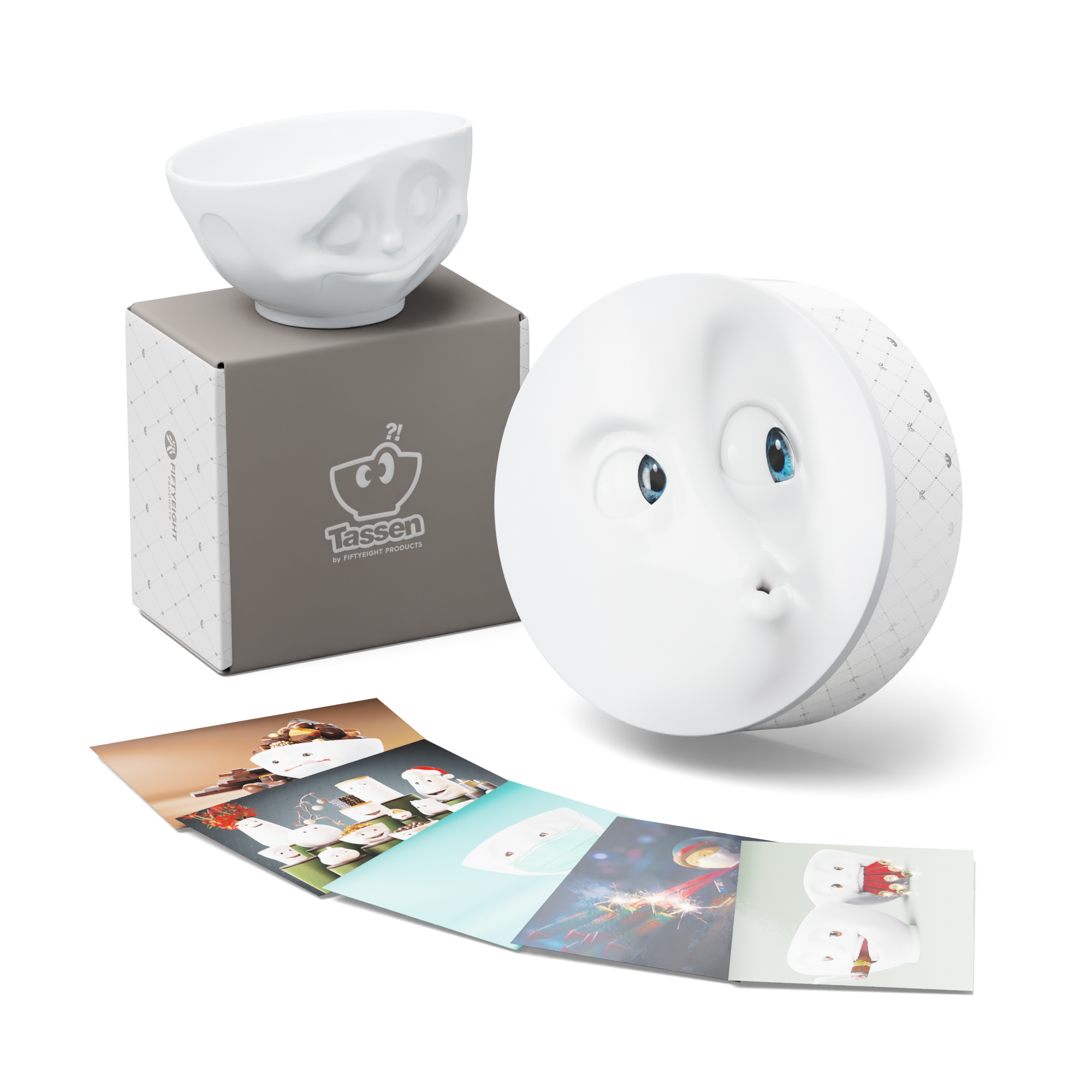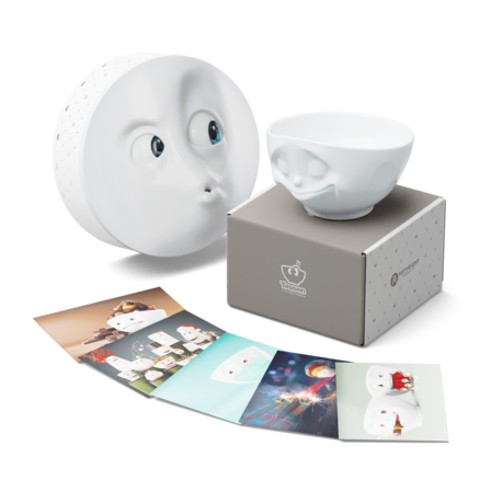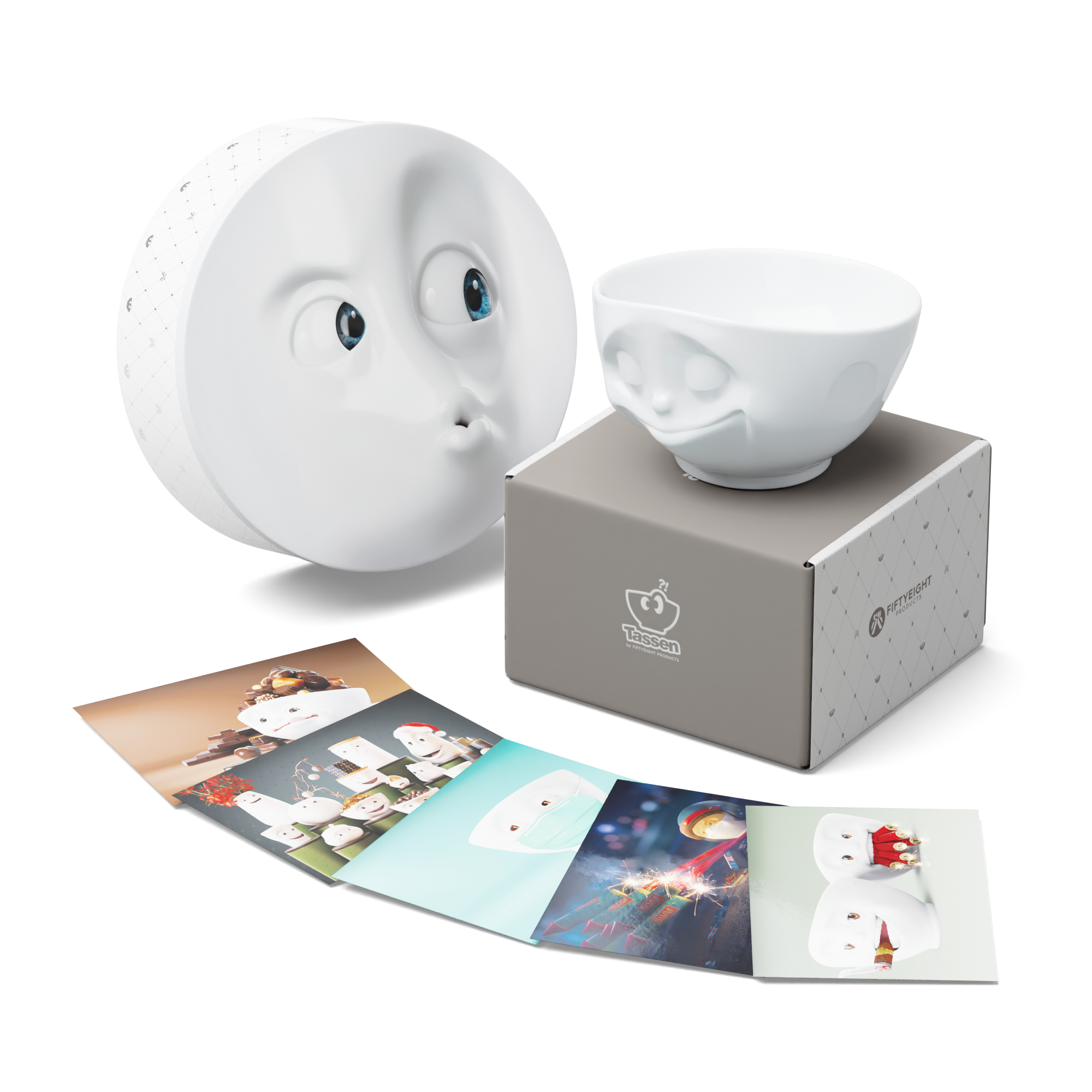 Unser Nikolaus Set beinhaltet eine Blechdose frei wählbar und die 500 ml Schale Glücklich + 5 Postkarten*