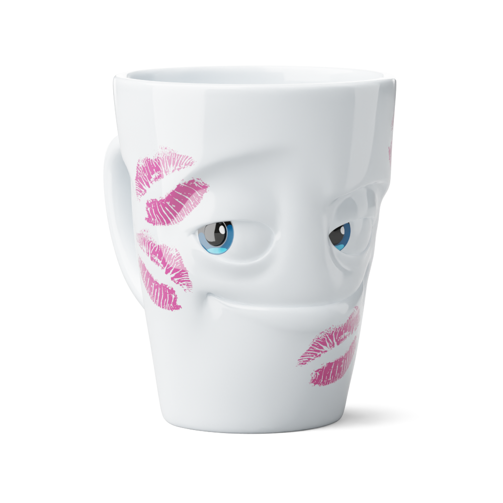Unser beliebter Henkelbecher Verschmitzt mit den blauen Augen hat ein besonders liebevolles Update bekommen: Er wurde rundum geküsst! 💋