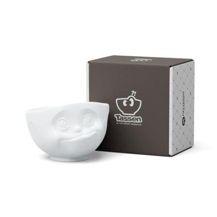 Das Design der XL-Schale bietet wahlweise vier beliebte Gesichtsausdrücke aus der TASSEN-Kollektion, nämlich „Lachend“, „Glücklich“, „Grinsend“ und „Lecker“.