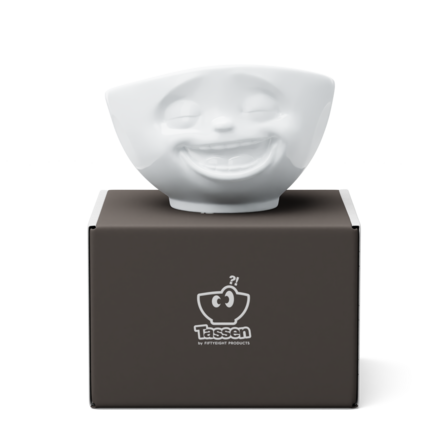 Das Design der XL-Schale bietet wahlweise vier beliebte Gesichtsausdrücke aus der TASSEN-Kollektion, nämlich „Lachend“, „Glücklich“, „Grinsend“ und „Lecker“.