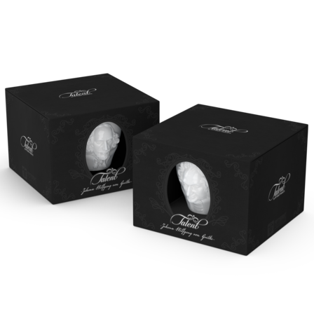 Denkmäler und Büsten sind ein wichtiger Teil der Kultur und erinnern an verdiente Künstler und ihre Werke. Mit der TALENT-Reihe schaffen wir gelebte Erinnerungen und holen „unsere“ Genies runter vom hohen Sockel und rauf auf den gedeckten Tisch.