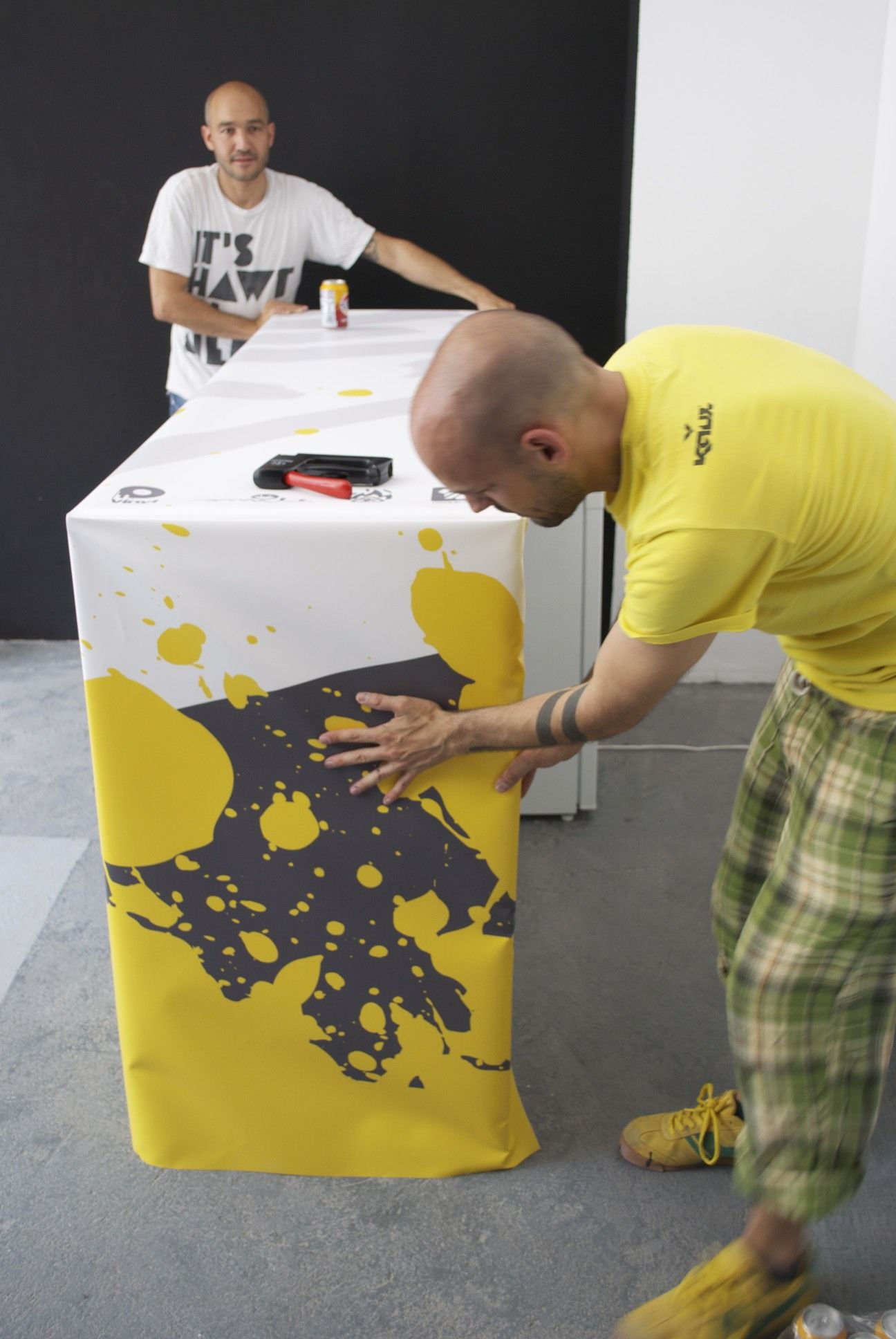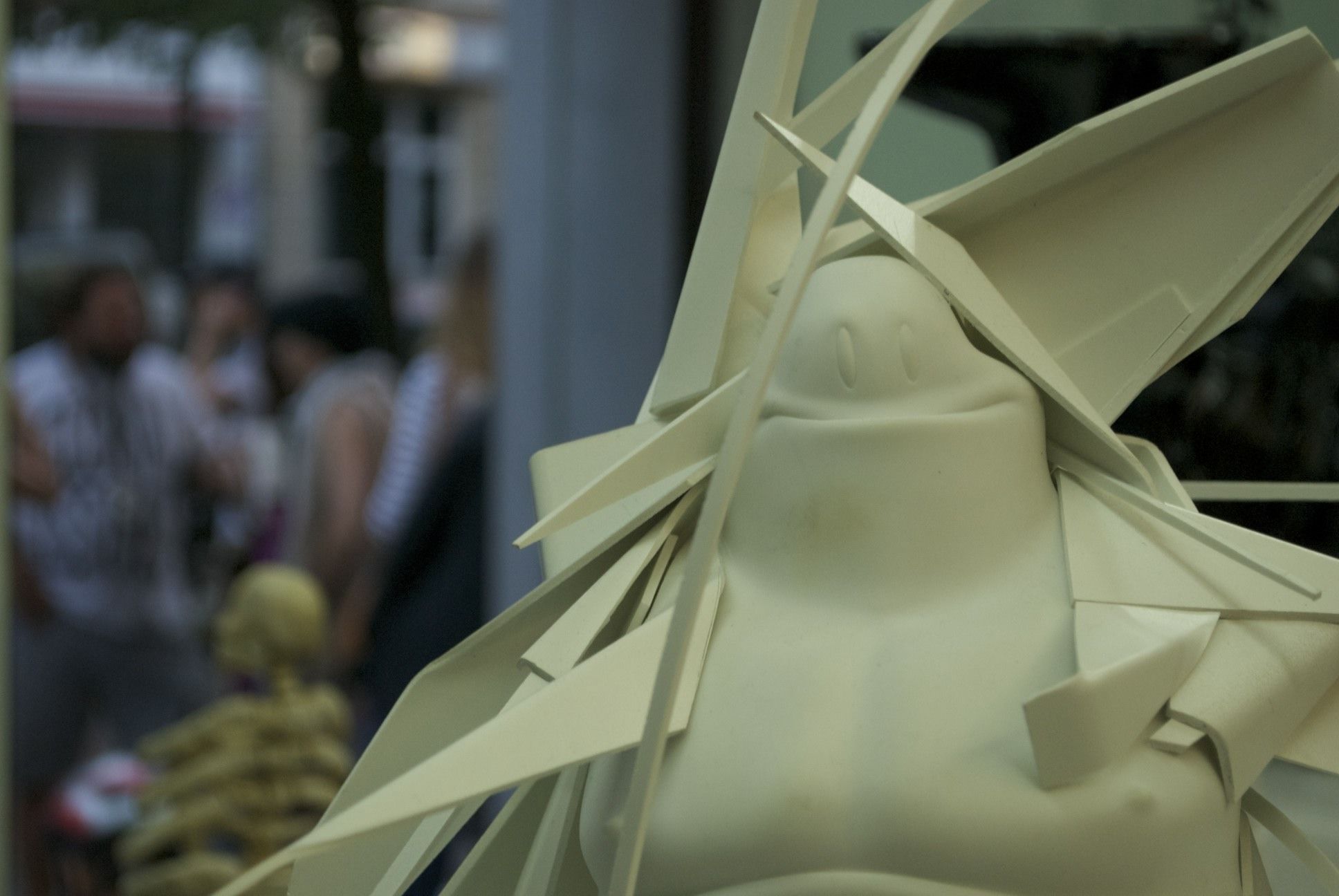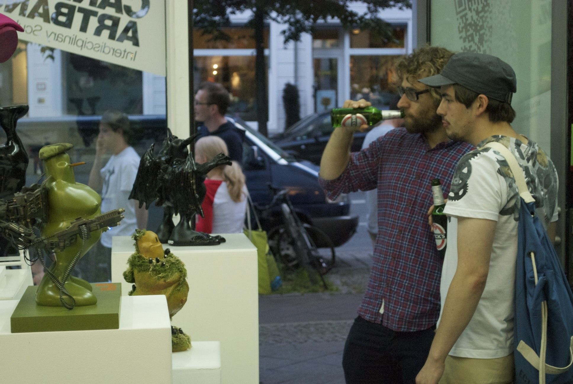 Brunnenstrasse zu finden: Wir mieteten den Raum an und ließen unsere Exponate einen Monat hinter einer Panzerglaswand auf die Öffentlichkeit einwirken.
