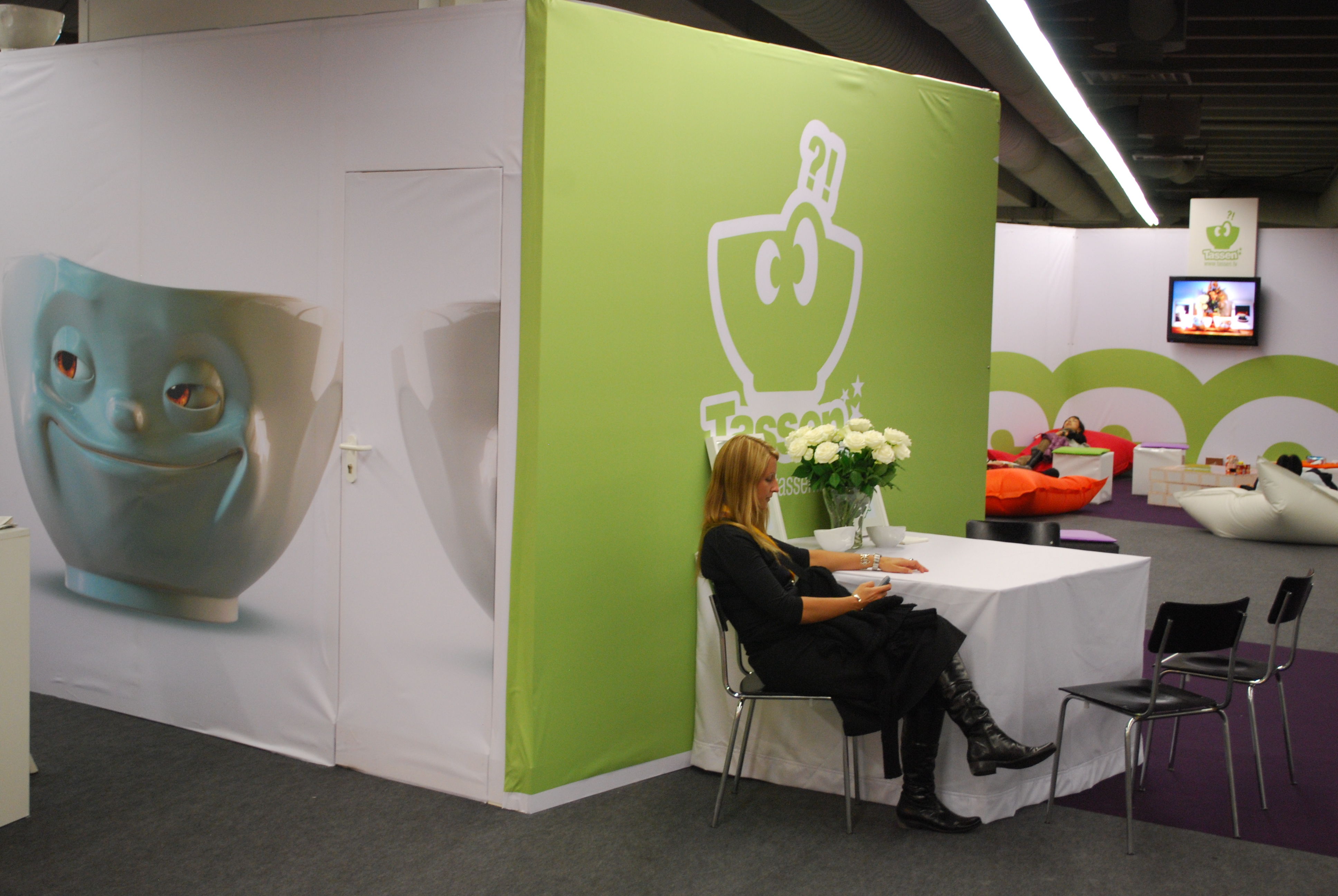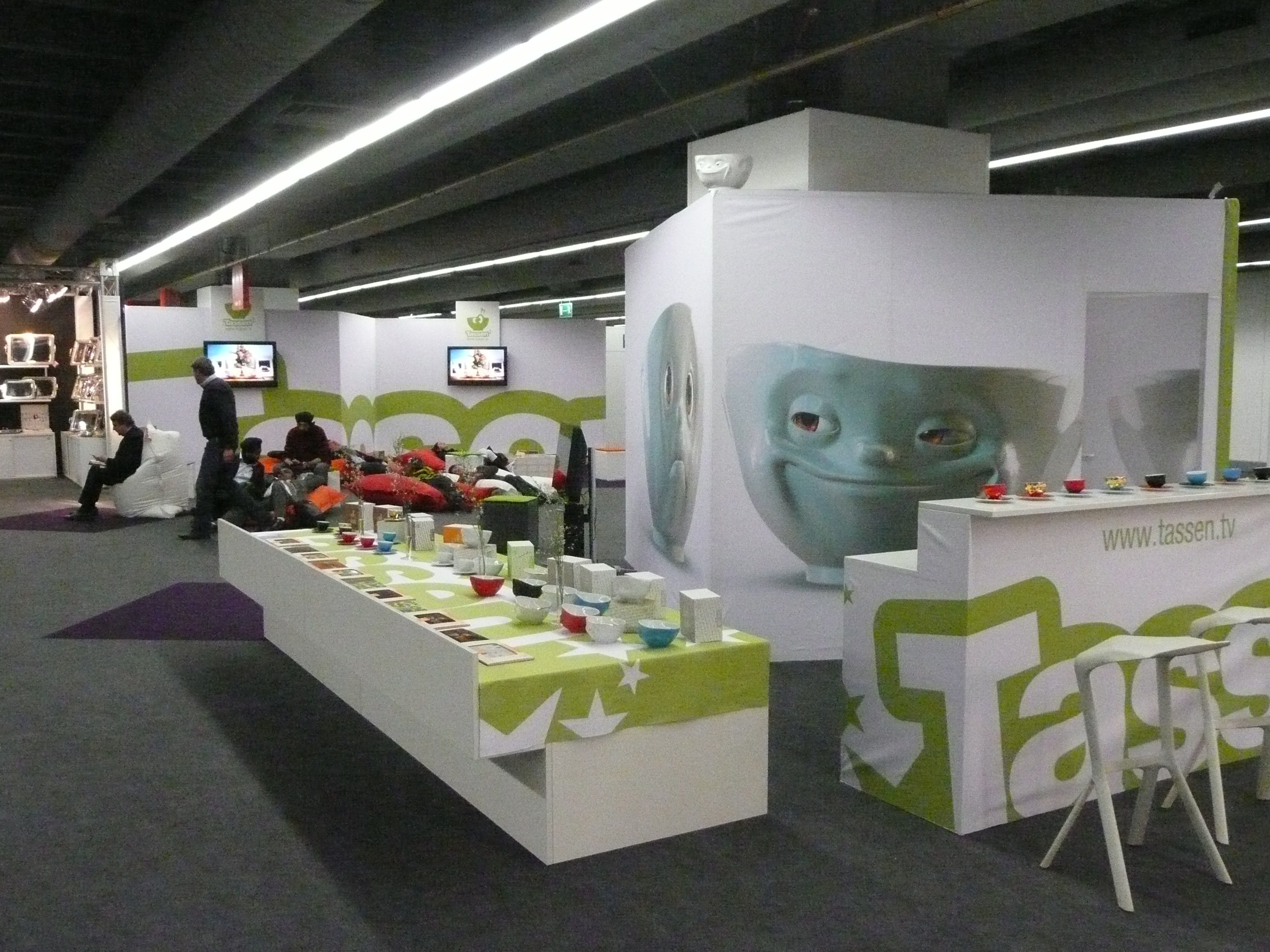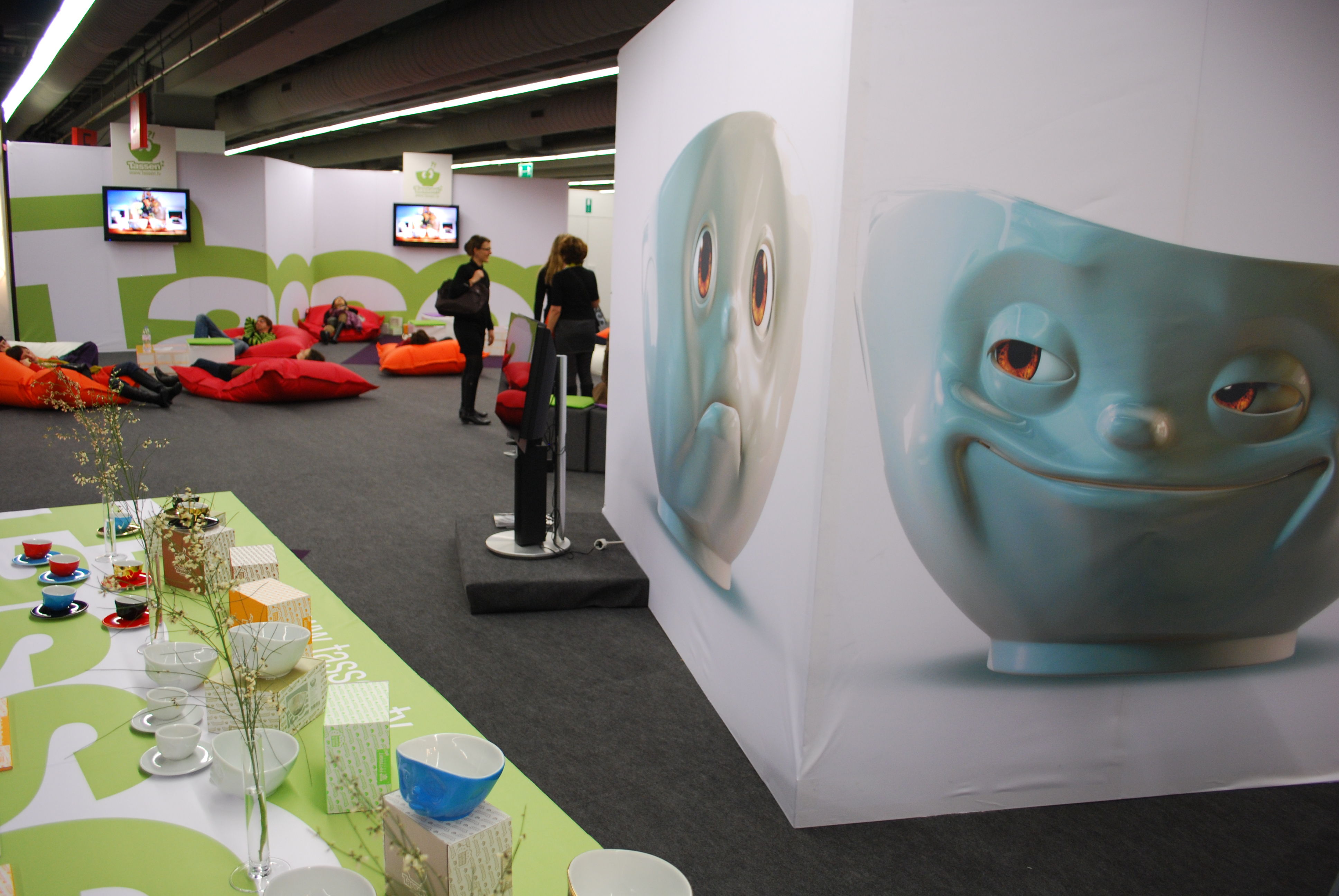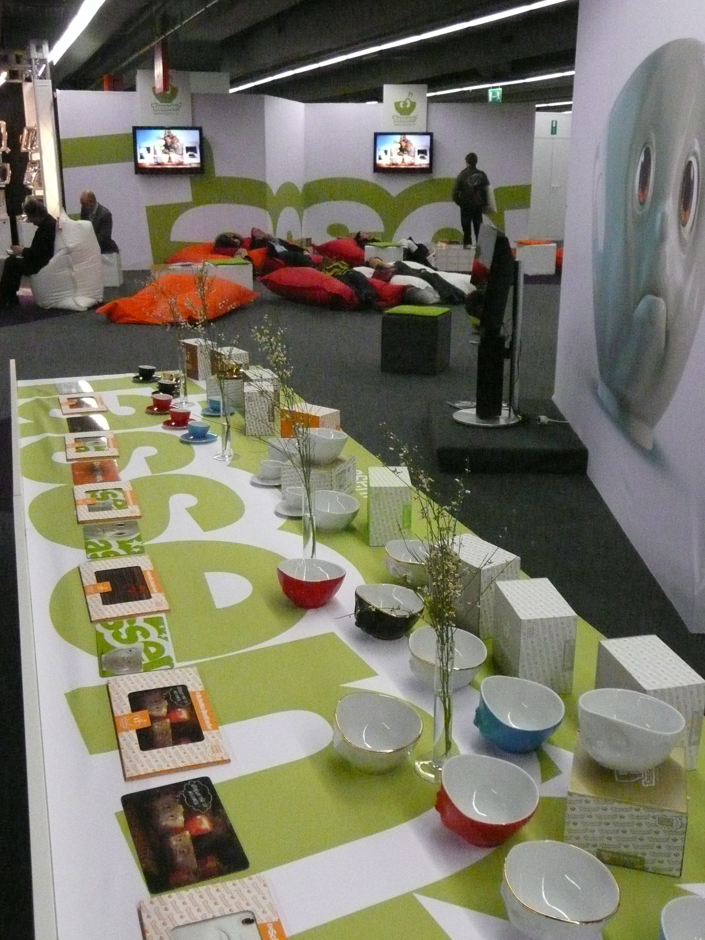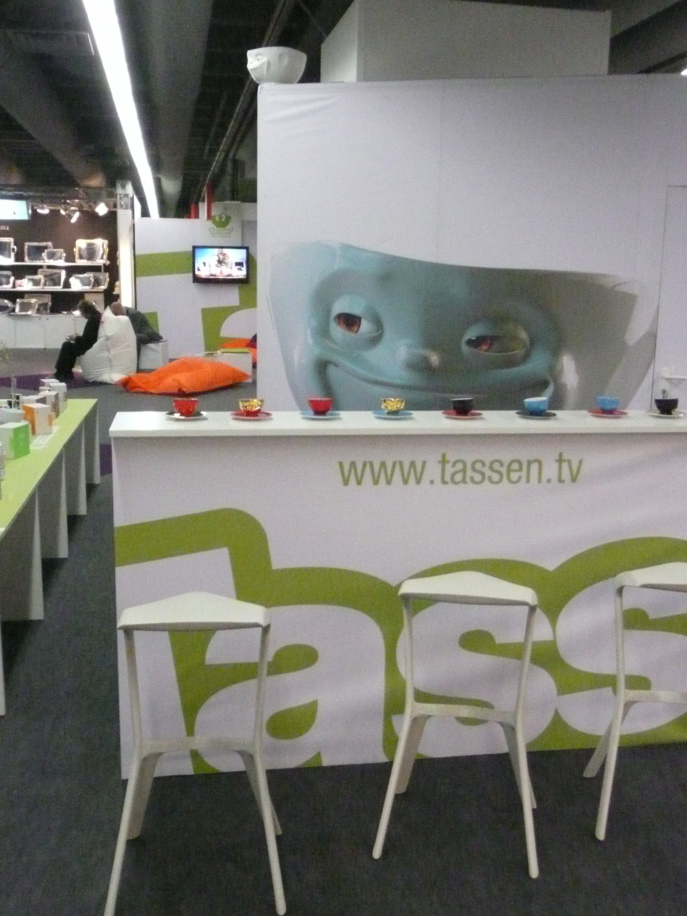 Ansonsten lud auch auf dieser Messe unser Stand erneut zum ausgiebigen Chillen ien. Das diesjährige Konzept der Messe „Ambiente goes City“ beinhaltete darüber hinaus Kooperationen zwischen Ausstellern und Frankfurter Einzelhändlern, die sich bereit erklärt haben, Produkte von Messeausstellern in ihren Shops zu präsentieren. Wir hatten die Ehre, unsere TASSEN bei Bang & Olufsen in der Schillerstraße inszenieren zu dürfen und haben uns in diesem edlen Ambiente sehr wohl gefühlt. Außerdem hatten wir auf diesem Weg einen TV mehr auf unserem Stand ;)