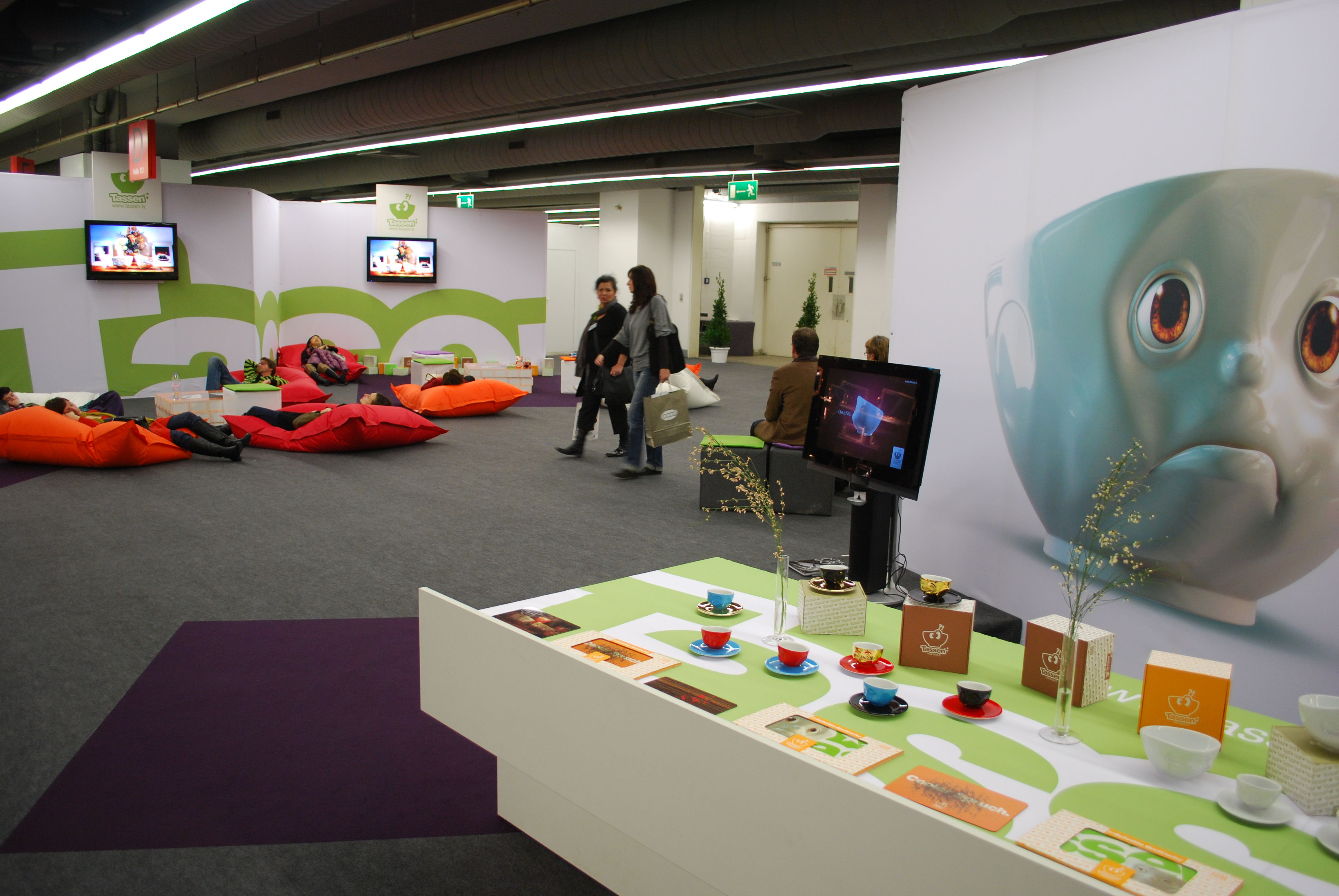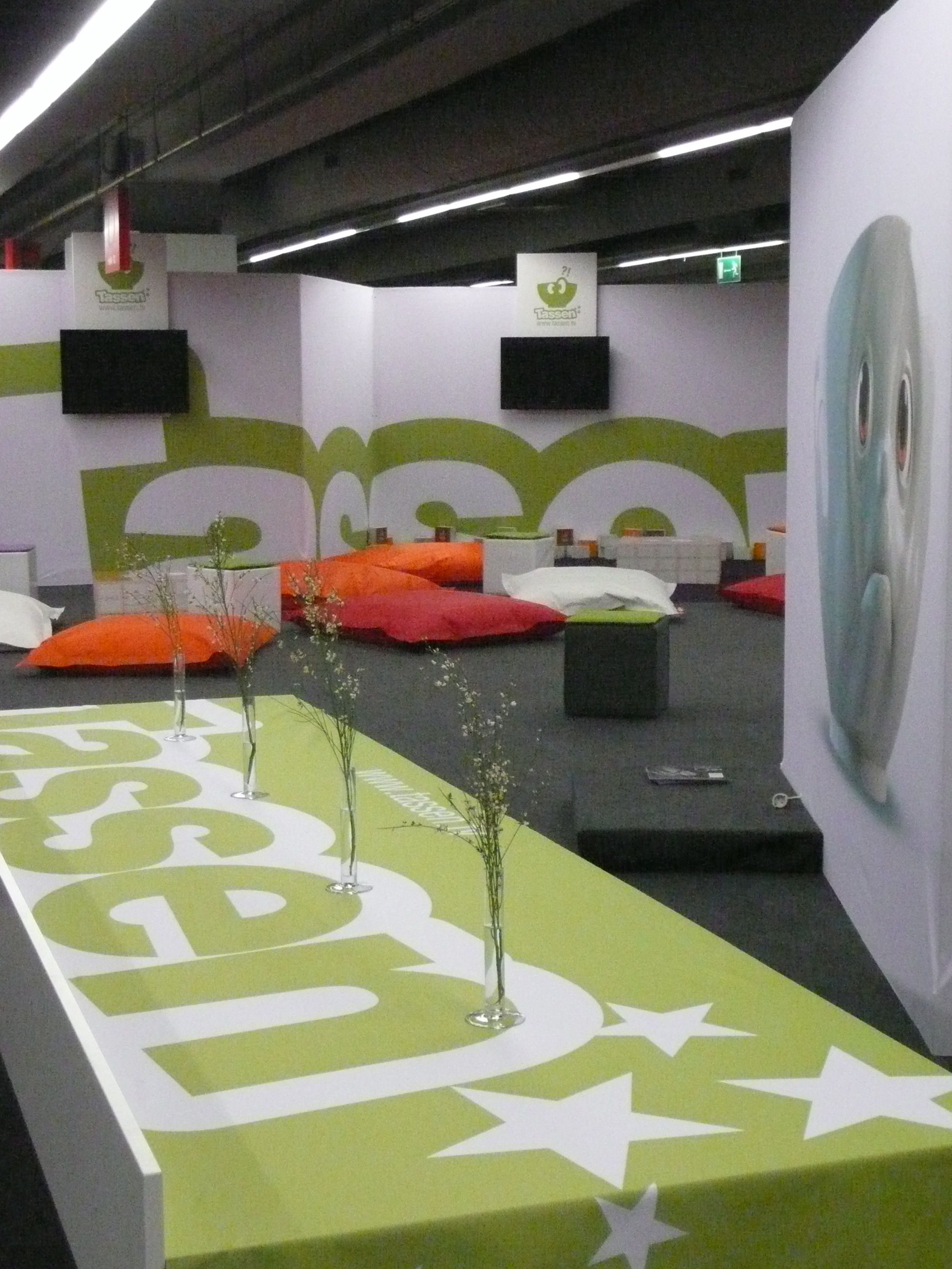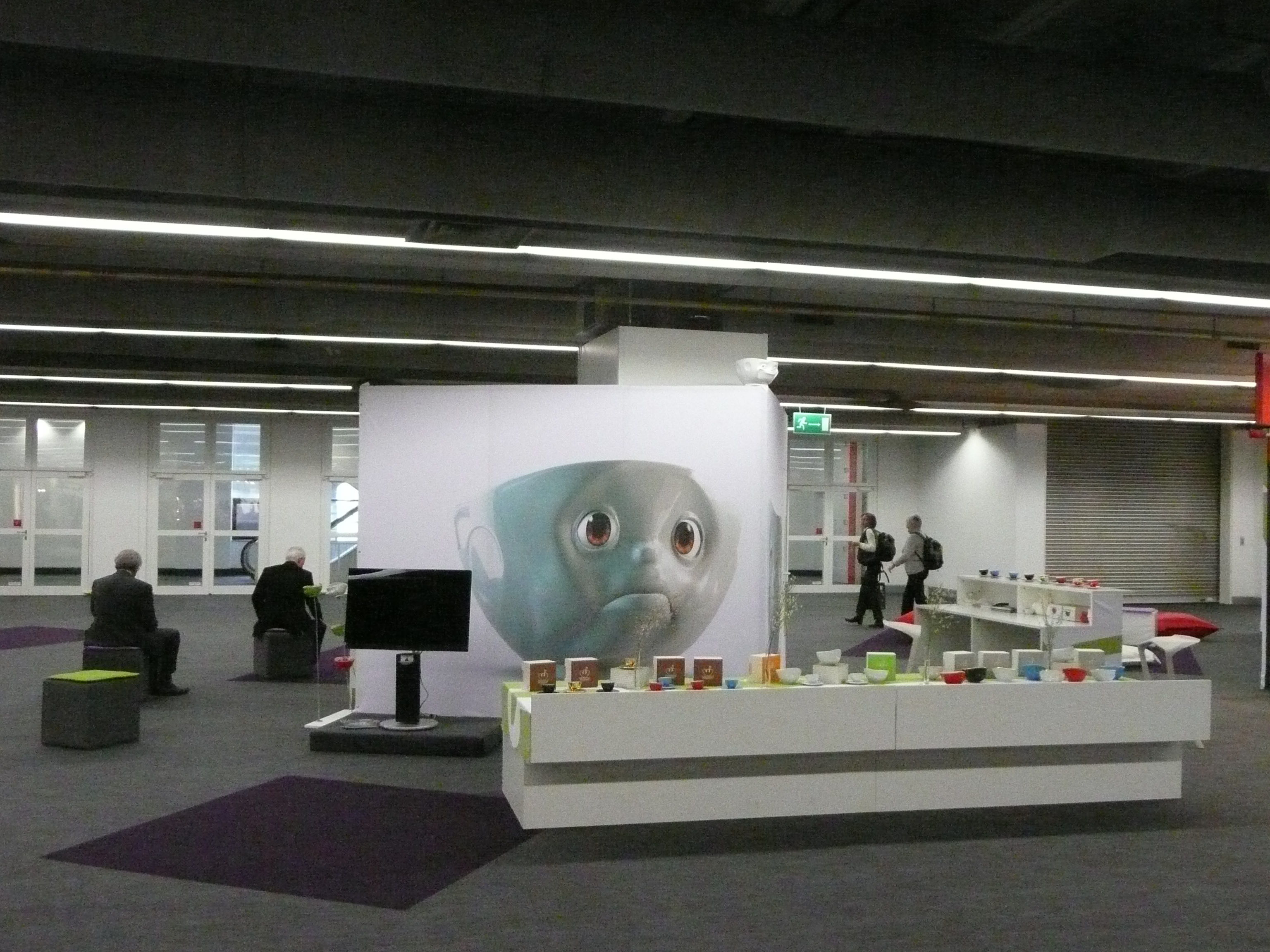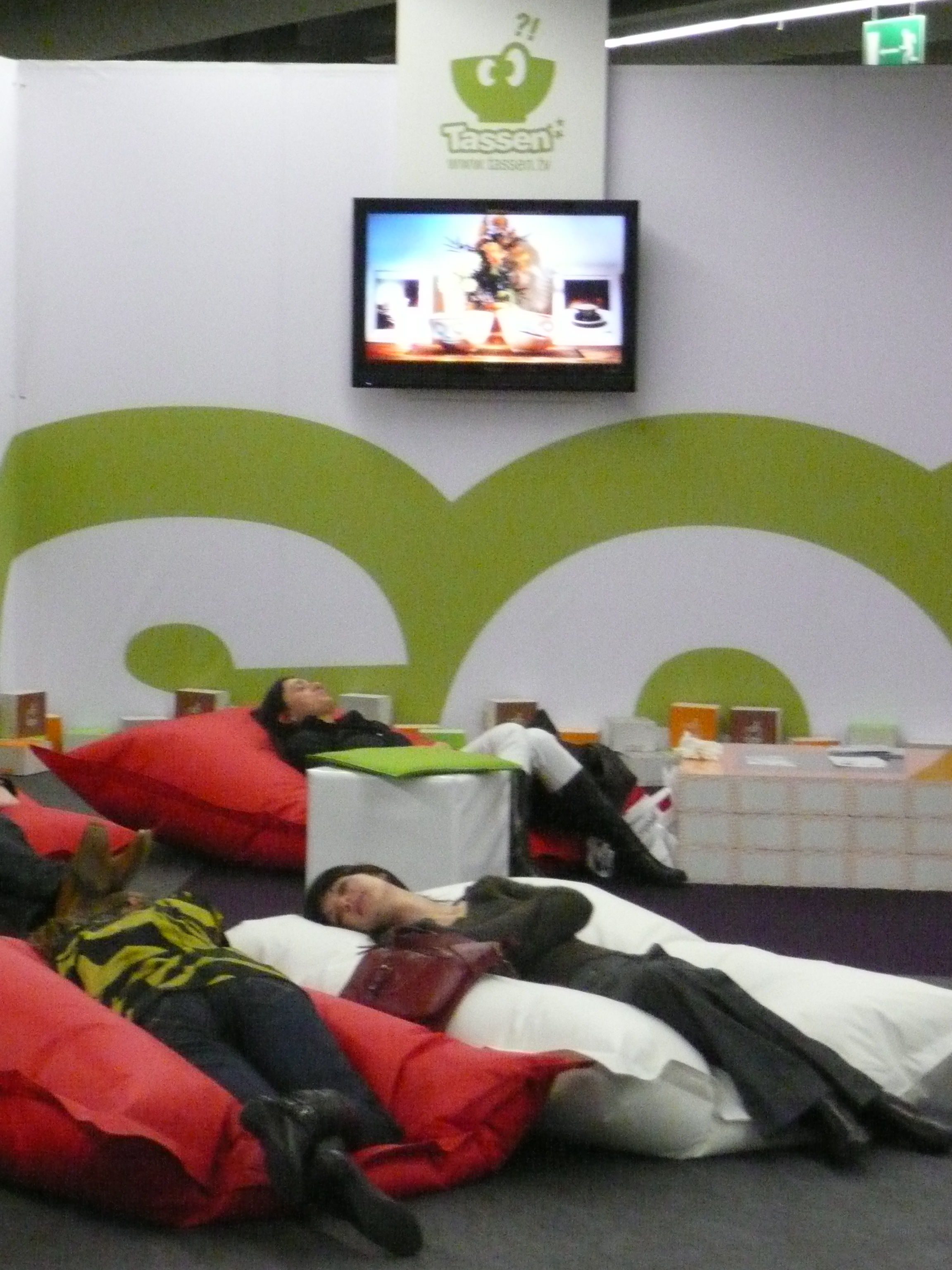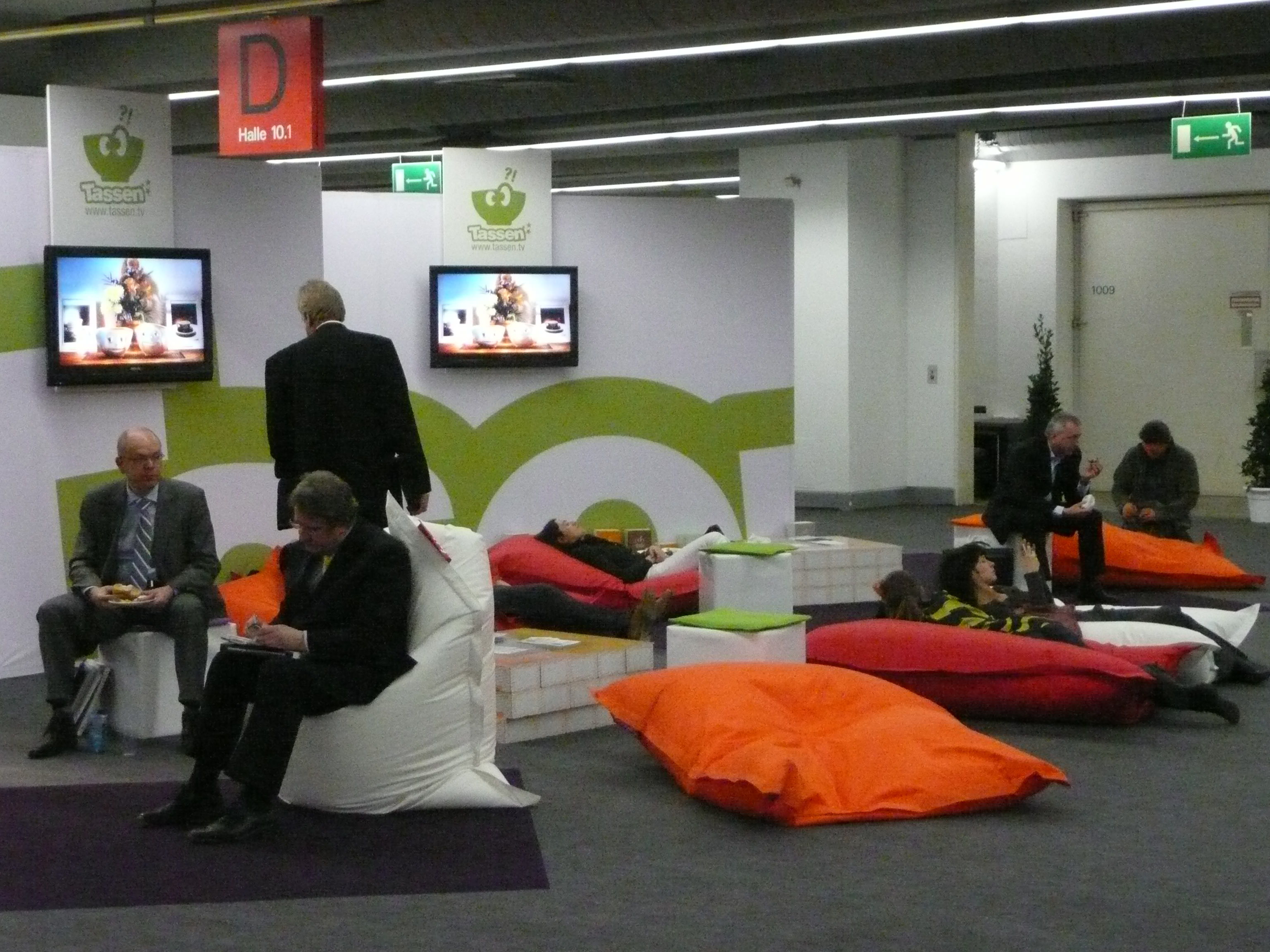 Ansonsten lud auch auf dieser Messe unser Stand erneut zum ausgiebigen Chillen ien. Das diesjährige Konzept der Messe „Ambiente goes City“ beinhaltete darüber hinaus Kooperationen zwischen Ausstellern und Frankfurter Einzelhändlern, die sich bereit erklärt haben, Produkte von Messeausstellern in ihren Shops zu präsentieren. Wir hatten die Ehre, unsere TASSEN bei Bang & Olufsen in der Schillerstraße inszenieren zu dürfen und haben uns in diesem edlen Ambiente sehr wohl gefühlt. Außerdem hatten wir auf diesem Weg einen TV mehr auf unserem Stand ;)