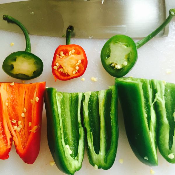 Ach so, eine Sache noch: Nach dem Schneiden und Zubereiten der Pfefferschoten bitte gründlich die Hände waschen, bevor man ins Gesicht greift oder die Augen reibt und dergleichen. Sonst wird’s brenzlig.
