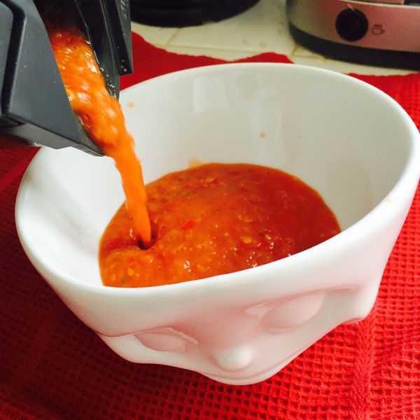 Bei unserer Variante entfalten die Tomaten durch Rösten im Ofen ihren vollen, erfrischenden Geschmack. Zwei Sorten Pfefferschoten sorgen für die typische Schärfe, während frisch gehackte Zwiebeln und Korianderblätter etwas Abkühlung verschaffen.