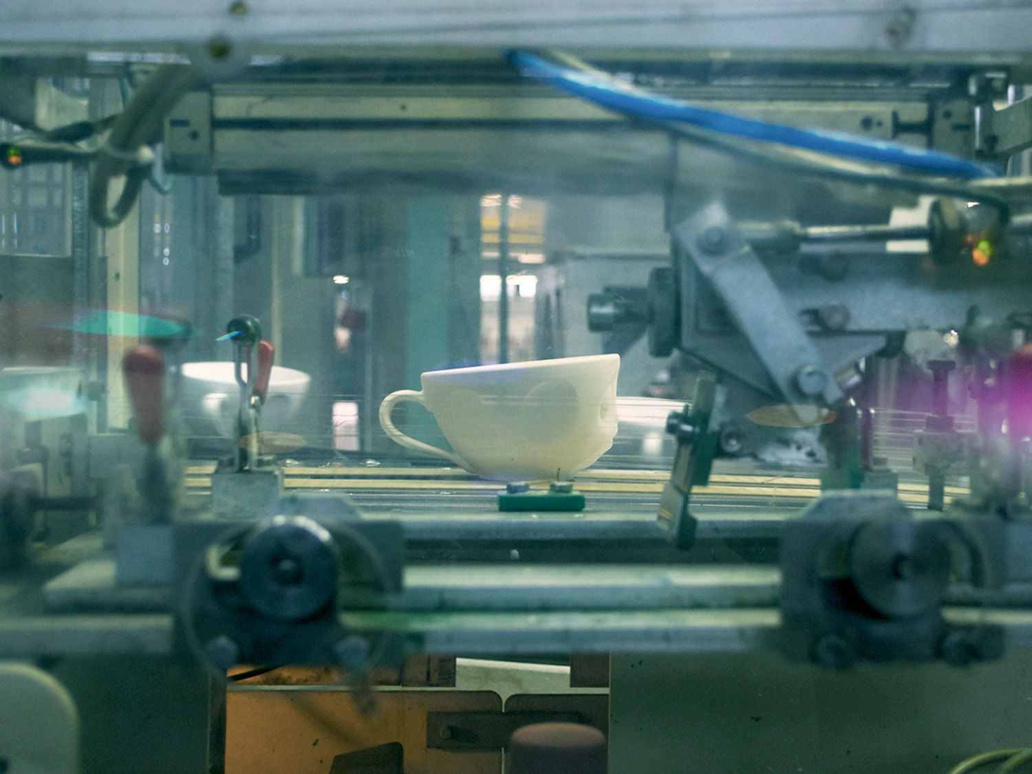 Aber mal abgesehen von den grinsenden Gesichtern, was macht die TASSEN überhaupt so kompliziert in der Herstellung? „Die TASSEN-Produkte erfordern einen grundsätzlichen Paradigmenwechsel in der Porzellanindustrie”, erklärt Engelmann. „Ursprünglich lautet das Paradigma in der Porzellanherstellung, in den Produkten eine möglichst gleichmäßige Dicke des Porzellans, auch als Scherbenstärke bekannt, zu erzielen. Gleiche Stärke sorgt für ein einheitliches Trockenverhalten nach dem Guss in Formen sowie gleichmäßiges Brennergebnis des Porzellans im Ofen. Alles natürlich Grundvoraussetzungen in der Serienproduktion von Porzellan mit Qualitätsanspruch.“